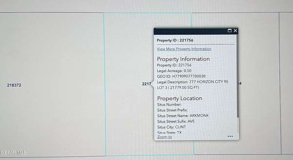 Est $392/mo.50-acre residential lot in the rapidly growing Horizon City area--great opportunity for investors or future development. Convenient road access supports easier utility extension and building potential. Ideal for a custom home or long-term hold as the area continues to expand. Enjoy a quiet setting with close proximity to city access, schools, and amenities. BUYER TO VERIFY WITH THE CITY FOR UTILITIES INFORMATION AND ACCESS. COORDINATES ARE 31.65455,-10615335