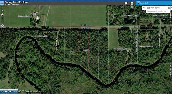 Est $191/moTHIS IS THE VACANT LOT YOU HAVE BEEN WAITING FOR ON BEAUTIFUL WHITEFACE RIVER. MAKE IT YOUR CABIN GET AWAY OR POSSIBLE HOME. GREAT LOCATION BETWEEN THE RANGE AND DULUTH. NOT FAR FROM HWY 53 OR HWY 7. NO DIRT ROADS. MOSTLY HIGH AND WOODED WITH A SLIGHT LOW SPOT BEFORE THE RIVER. IMAGINE THE SOUNDS OF FLOWING WATER, BIRDS CHIRPING, THE CRISP FRESH AIR, THROWING IN YOUR FISHING LINE FROM THE BANK OR RELAXING WHILE READING YOUR FAVORITE BOOK. THE ULTIMATE SERENE PROPERTY THAT MOST PEOPLE ONLY DREAM OF.