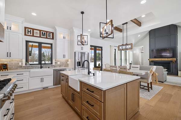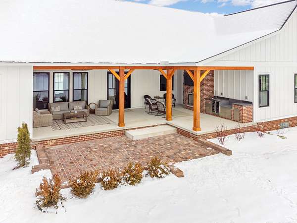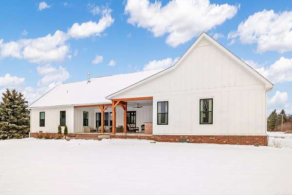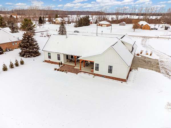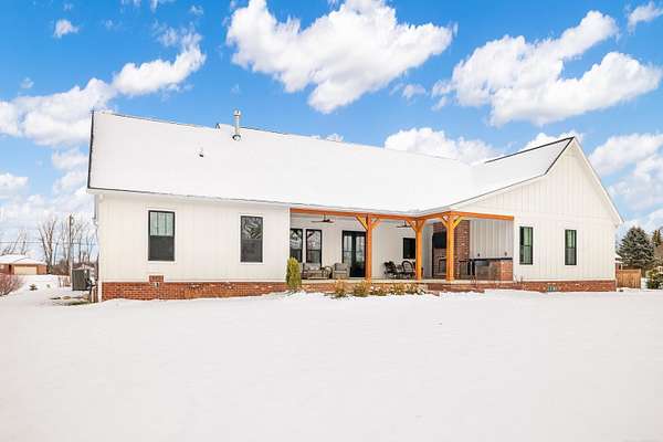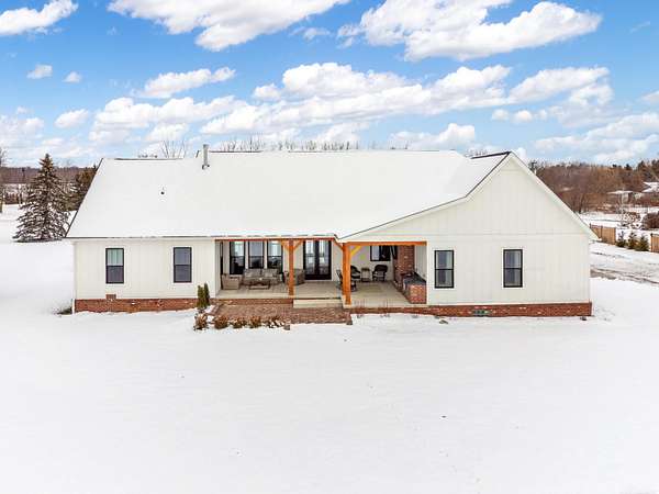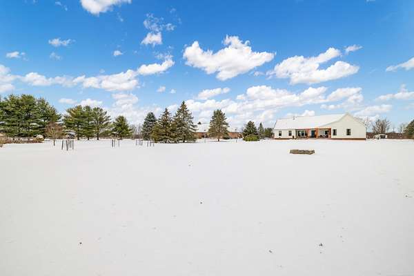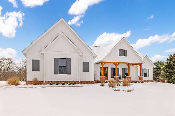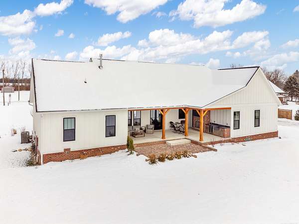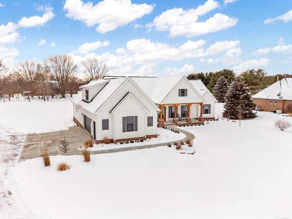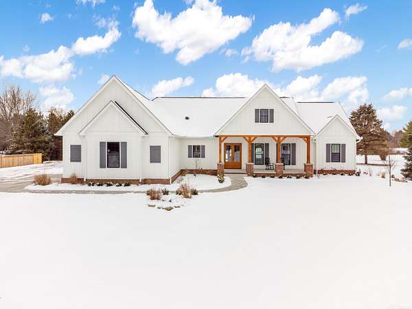 Welcome home to The Aspen Hill! This MOVE IN READY, new construction custom home boasts high-end finishes with an open concept layout and Craftsman style charm. Sitting on almost 2 Acres - This stunning and expansive SPLIT RANCH with bonus room provides both quiet country charm and modern conveniences. Designed with meticulous attention to detail and true one-floor-living in mind, this home boasts high-end finishes including custom cabinetry, premium appliances, lighting upgrades, hardwood floors, custom tile work, upgraded hardware, and plenty of room to roam. Enjoy the sun drench open-concept great room with vaulted ceilings, wrapped in windows, seamlessly connected to the gourmet kitchen with spacious pantry and oversized island ideal for entertaining. A bonus room ensuite offers flexible space perfect for a playroom, additional home office space, an inlaw suite, media room, or just more room to expand. Steps from the 1st floor laundry, the private master suite showcases luxurious finishes including custom marble tile, a curbless walk-in shower, a soakers tub, dual sinks all complete with both his and her closet space. The additional bedrooms are generously sized, offering comfort and privacy for both family or guests. A private office overlooking the expansive green space makes this one truly unique. Outside you will find an entertainer's dream with a large covered front porch as well as an oversized rear covered patio complete with a gas fireplace, built-in grilling area, beverage fridge, and additional outdoor storage. Outdoor touches include landscaping, fresh trees, bushes and shrubs, brick paver work and new concrete. Plenty of room for your custom barn or outbuilding. If you're seeking a move in ready new construction retreat with the perfect mix of country living and upscale design, this property delivers it all.