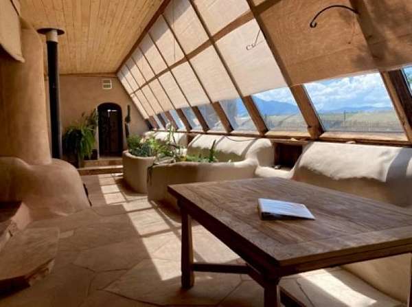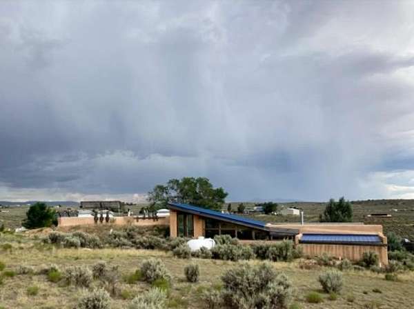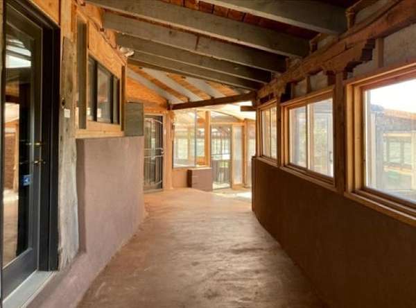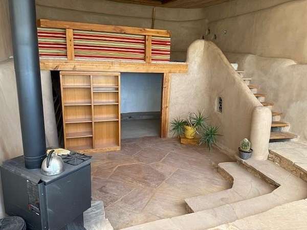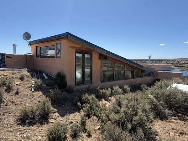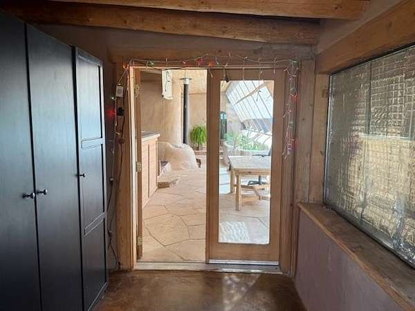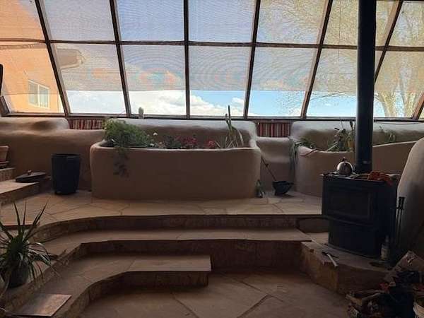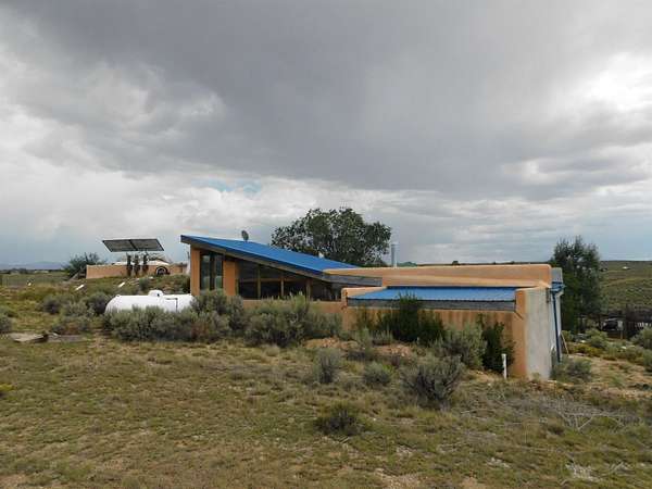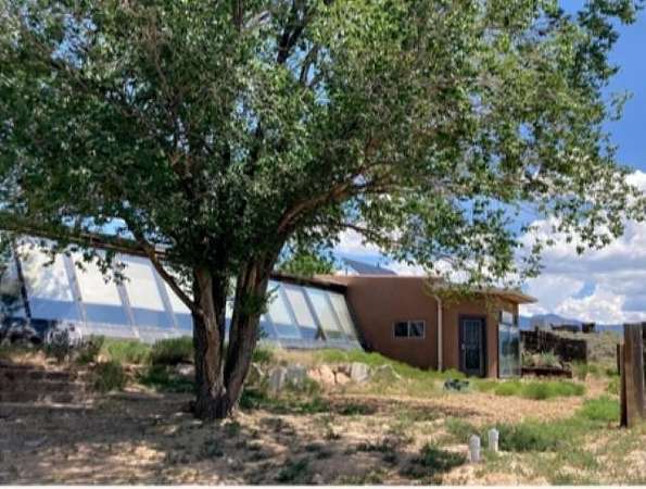 This authentic Taos home originated as an Earthship in 1995, hand-built with rammed earth tire walls on the north, west and east, and a wall of slanted glass on the south. Over time, it expanded with additional greenhouses, workshop, and a studio creating approximately 4000 square feet of interior space. Outdoor latilla fences, gardens, and mature trees create a welcoming atmosphere. Sustainable living guides the heart of the home. The home is a hybrid, using both an off-grid solar electric system This and electricity from Kit Carson Electric. Hardwire is in place for internet (TaosNet) and telephone landline. A water catchment system includes three cisterns with a total capacity of 6000 gallons; rain water is collected from the roofs and gray water is collected separately from the bathroom sink and shower. A new three-bedroom-capacity septic system was placed in spring of 2025, at a cost of $15,800. (See associated document.) Enter the home from the south through the West Greenhouse. This light-filled room has an organic close-to-the-earth feel with outdoor carpet on the ground and translucent ceiling above. To the right is the South Greenhouse with a built-in planter and shelves for more plants-an ideal sitting room to soak in warmth of the sun on cold winter days. Through the West Green House, to the north, are glass doors to an outdoor area and a wide hallway leading to the studio. A metal screen door with locking wood door at the front of the hall leads into the Earthship. Earthship: Through a mudroom with a freestanding closet system, you step on to the flagstone floor of the Earthship and into open area large enough for a family sized dining table and chairs. The room continues along the bank of windows with built-in planters below. To the left, step up to the spacious open kitchen with granite countertops, open shelving, an island with stove, and more open shelving. To the north of the planters is the sunken living room with a wood stove and high ceiling. Behind the living room is a small room under a loft that could be used as an office, library, walk-in closet. Up the open staircase is the large sleeping loft with skylights to let in fresh air and light. Back on the ground floor, at the end of the wall of windows, step up into a large bathroom area with a mirrored closet, vanity sink, walk-in shower, and hot tub and the toilet is in its own little room next to the vanity. Hallway: Down the hallway, before reaching the studio, is a door to the workshop with ample storage space and the solar voltaic components. The wide hall has windows on the top half of the western wall. Studio: At the end of the hallway, also with an entrance from the outside, is a 1200 square foot studio with radiant floor heat. The rectangular room has a vaulted ceiling with a loft at the eastern end. High windows let in northern light. Within the studio is half-bathroom with shower, sink, toilet, and washer hook-up. At the northern end of the studio is a cool storage room and the utility closet that houses the propane radiant floor heating system and on-demand water heater. Additional information: Square footage of the property should be regarded as estimated. Buyer is advised to take measurements and conduct inspection(s) of the home and its systems to assure accuracy and condition. There is no domestic well on this property; neighboring wells are reported to be 400-450' deep. The current owners augment their drinking water by importing water during dry years and use a Berkey filter for drinking and cooking water. The property survey was updated in the spring of 2025 (see documents). Broker and Brokerage take no responsibility with regard to the size or condition of the property.