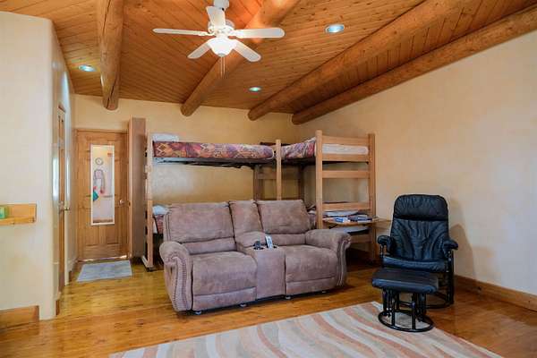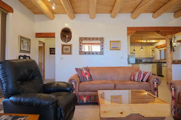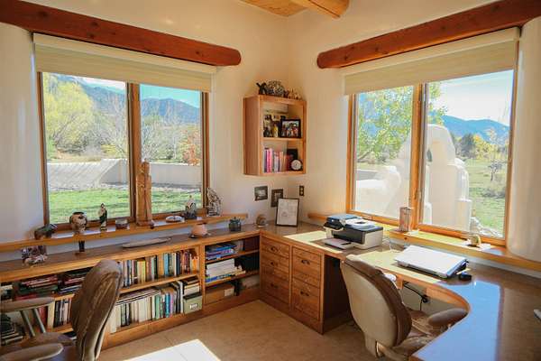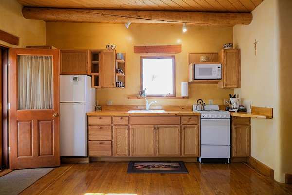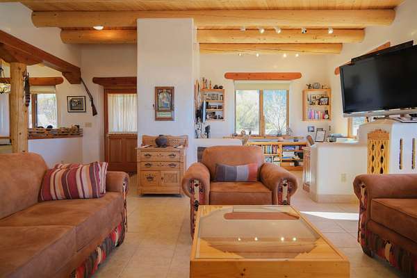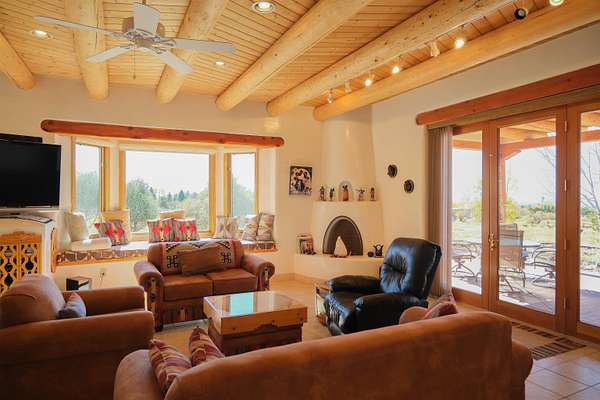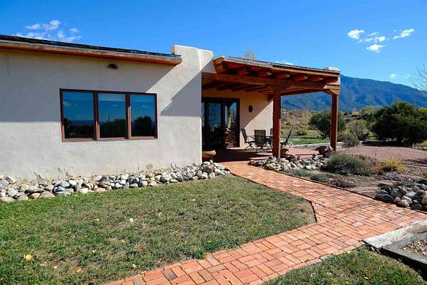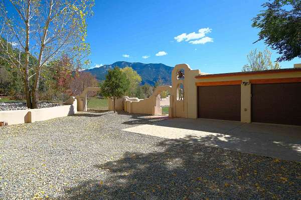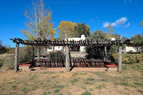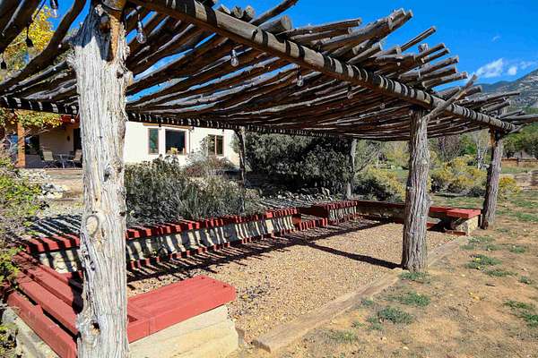 Tucked into the coveted El Salto enclave along the scenic road to Taos Ski Valley, this soulful adobe estate captures the timeless spirit of Northern New Mexico living. Set against big skies and high-desert light, the home enjoys classic Southwestern touches and stunning views in every direction. Authentic adobe construction grounds the main residence in warmth and character, with thick earthen walls, viga ceilings, diamond finish plaster, custom carved built-ins and handcrafted traditional details throughout. The main house has two beds, two baths, a fantastic chef's kitchen, an office nook with stunning, direct views of El Salto Mountain, front and back portals designed for slow mornings and golden-hour evenings, and a heated attached garage with a built-in work bench. To the side of the primary residence is a wonderful, large shady Ramada with a sunken-firepit-a perfect place to gather with friends and family under the large, expansive starry sky. The property unfolds as a true compound: the charming guest house with a full kitchen is wonderful for visitors or rental potential. The guesthouse also has a dedicated workshop for creative or practical pursuits, and an additional attached garage. There is a 3-bay pole barn on the Western edge of the property, ideal for storing equipment, and all the gear you will want to support the outdoor recreating opportunities that are literally right outside your door. 8 Juan Martinez is located at the mouth of the canyon that connects to Taos Ski Valley- 15 minutes and you're at the base of one of the best Ski and snowboard resorts in the Rockies! This custom home has been lovingly maintained by the original Owner who has created many of the custom finishes that grace this property on-site. Valuable water rights enhance both lifestyle and long-term value, supporting gardens, land stewardship, or future vision. Private, grounded, and rich with character, this El Salto offering is perfectly positioned for those who want serene mountain living with quick access to skiing, hiking, and the cultural heartbeat of Taos. A rare blend of authenticity, versatility, and location-this is Northern New Mexico living at its most genuine.