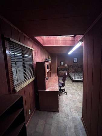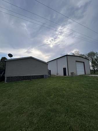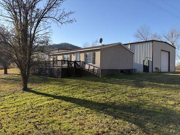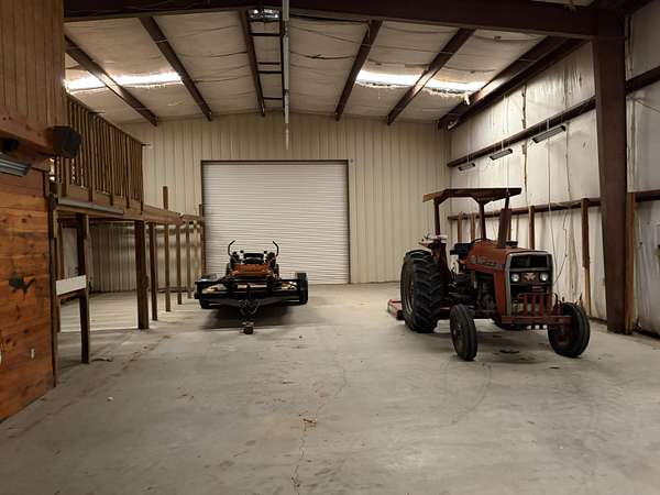 Versatile rural property offering open pasture, barn/garage improvements, and recreational land. Pasture is currently used for hay with some fencing suitable for livestock. A creek borders the pasture, and a livestock water tank serves the field. The home is positioned near the front of the property for convenient access and offers approximately 960 sq ft with 3 bedrooms, 2 full bathrooms, and a deck. A gated driveway provides privacy. A major feature is the large approximately 13,200 sq ft barn/garage. The front 40x60 section includes concrete installed in 2024, while the rear 90x120 section remains unfinished with a dirt floor, offering flexible space suitable for storage, workshop, agricultural, or recreational use (buyer to verify permitted use). An upper-level area within the garage-accessed from the arena side-offers additional space that could be used as a one-bedroom, one-bath living area or office (buyer to verify condition, use, and permitting). Electrical service is present; buyer to verify suitability for intended use. The property includes wells and free gas; production and availability not guaranteed. Portions of the land lie within a flood zone and include protected wetland areas not suitable for development and best used for hunting, recreation, or buffer land. Approximately 34.86 acres per recorded plat. Deed references multiple tracts totaling approximately 31 +/- acres. Buyer to verify acreage, boundaries, utilities, zoning, and permitted uses. Property is being sold AS-IS; inspections are welcome.