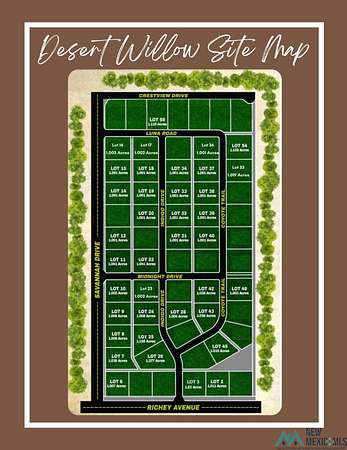 Est $598/moDesert Willow Estates is a community designed to inspire authentic New Mexico living, creating space for the home of your dreams. Our goal is to provide home sites that flexibly meet the needs of our clients while maintaining the natural beauty of the desert. We determined the value of our home sites by evaluating comparator home sites, custom home site availability, lot size, utility infrastructure and Location, Location, Location. We look forward to working with you soon!