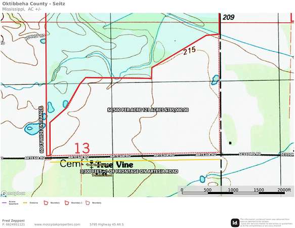 Located on Artesia Road in Oktibbeha County, Mississippi, this 121± acre tract presents an outstanding opportunity for development, investment, agricultural use, or long-term hold in one of the most strategically positioned areas of the Golden Triangle region. With approximately 3,300 feet of road frontage on Artesia Road, this property offers the size, accessibility, and location that are increasingly difficult to find in the Starkville market area.