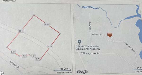 Houghton Avenue east to Old M-76, east on Flowage Lake Road, north on Crawford Street to Arthur Court, east to property on the NE side