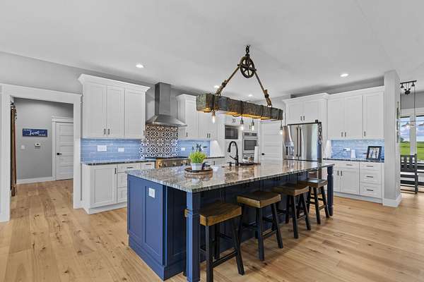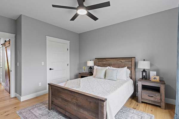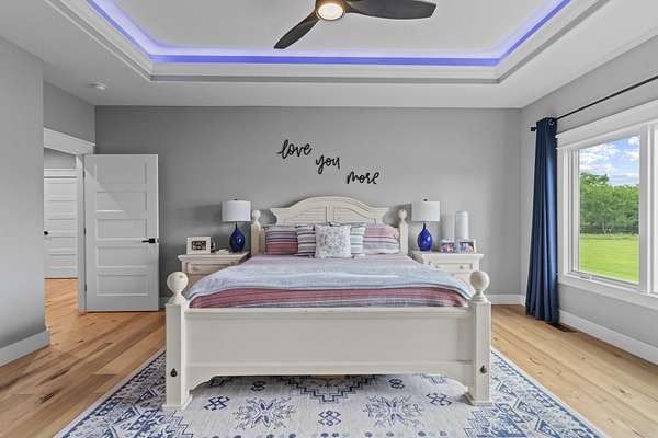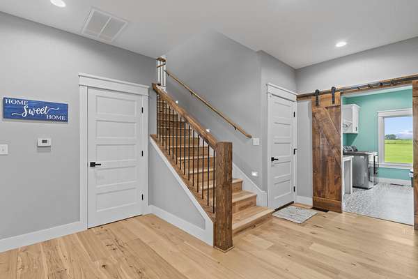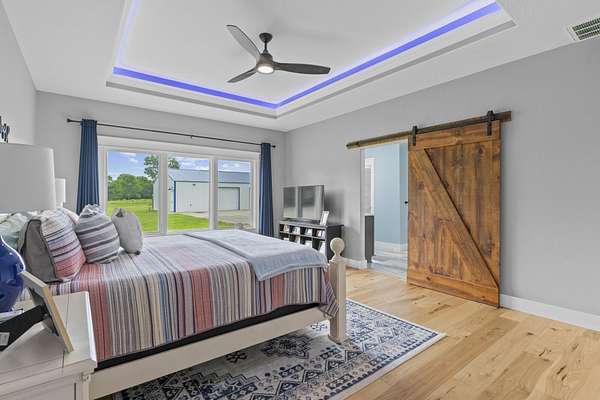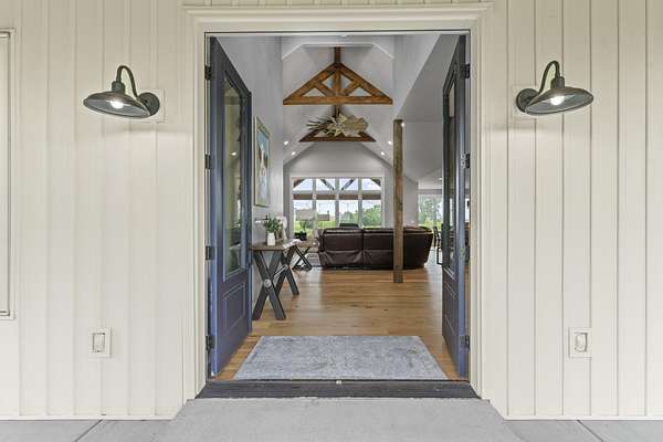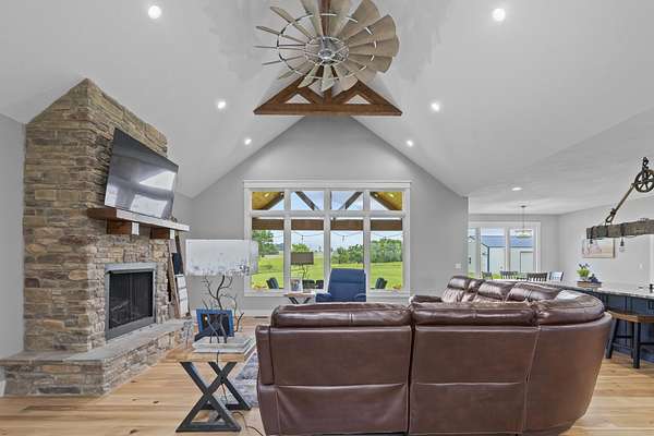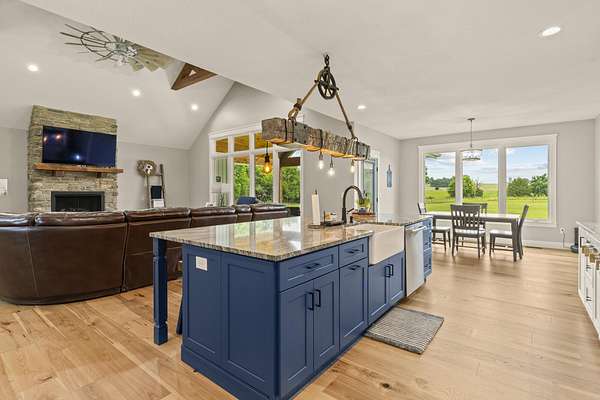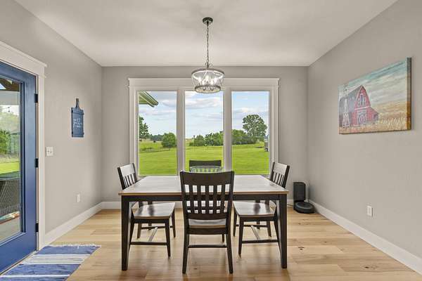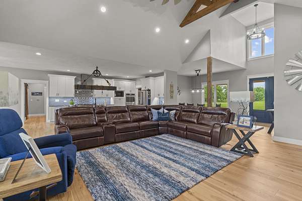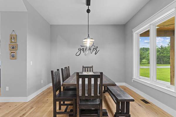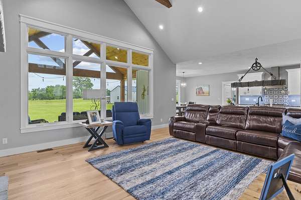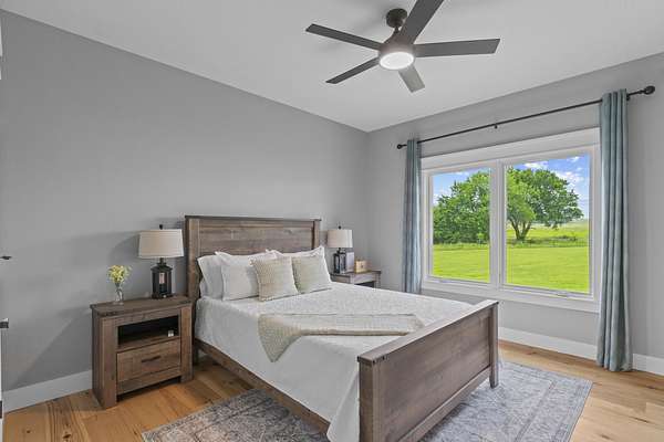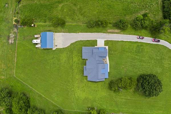 Built in 2022, this custom farmhouse-style home sits on 18 beautiful acres just outside Ash Grove and a short drive to Springfield, offering the perfect blend of modern comfort and peaceful country living. Step inside and you'll immediately appreciate the light filled open floor plan, highlighted by soaring beamed ceilings, hardwood flooring, expansive windows and striking stone gas fireplace. The kitchen was designed with both entertaining and everyday living in mind, featuring a large island, double ovens, abundant cabinetry and a walk-in pantry. The main level includes 3 bedrooms, which includes the primary suite with an oversized walk-in closet, soaking tub and large walk-in shower. Upstairs is a bonus room that works as a 4th bedroom, office or hobby space. Enjoy the tranquility of the countryside from the covered back patio or take in the spectaular sunsets from the welcoming front porch. The 18 fenced acres provide endless possibilities for livestock, recreation or simply enjoying wide open spaces. A 30x49 insulated outbuilding with electricity adds valuable flexibility for a workshop, equipment storage or hobby building. If you're searching for a newer custom home on acreage, this exceptional property delivers.