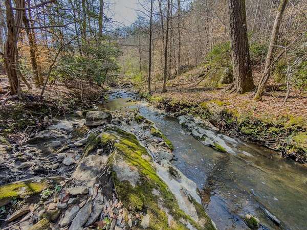 Park-Like Atmosphere: The combination of the creek, the Boulder-strewn hillside, and the deep woods creates a peaceful feeling across the entire acreage.