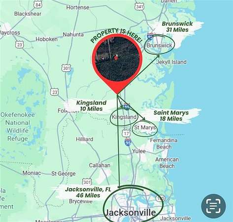 Map & Coordinates: View Location | 30.91844, -81.71977. Property is at the dead end right past 75 Ashley St, Woodbine, GA.