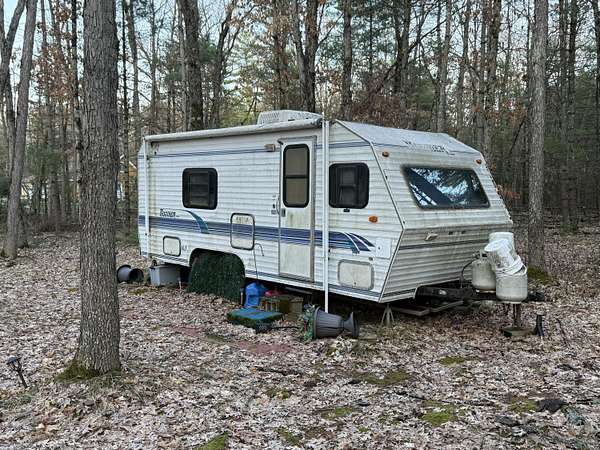 Est $229/moFind your self nestled in on your own slice of the Michigan wilderness on this 2.5 acre lot. This rustic site is surrounded by over 1000 acres of federal forest land. Accompanying the property is an outhouse on a concrete vault, a small shed, and an older camper.