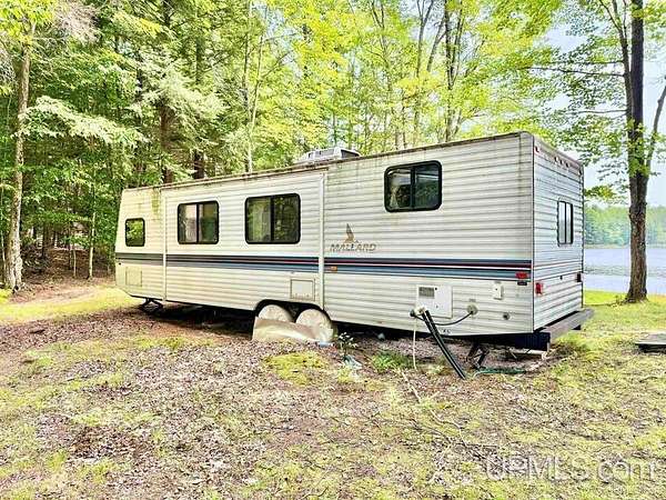 Look no more! A sizable lakefront parcel on sought-after Stoner Lake in now available. This 10-acre property adjoins public land, offering privacy and direct access to endless outdoor recreation, while featuring 175 feet of sandy shoreline along this beautiful inland lake. A driveway and underground power are already in place, providing a strong foundation for future plans. The sale includes all items currently on the property, including a 1996 travel trailer, wooden dock, shed with generator, outhouse, and additional starter items. A sand point well is present; condition is unknown. Stoner Lake's sand-bottom shoreline is ideal for swimming, boating, and lakeside relaxation. The surrounding area offers year-round enjoyment with nearby ORV trails, four-wheeling, and snowmobiling in the winter months. Whether you envision a future homesite, seasonal getaway, or recreational retreat, this versatile lakefront property delivers space, shoreline, and location in one remarkable offering.