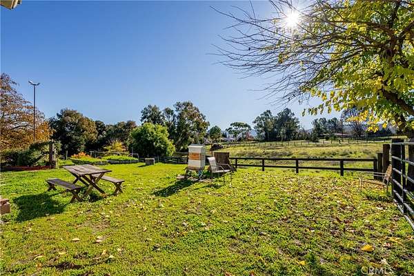 Welcome to this ideal country home offering 1702 sf, 3 bedrooms and 2 bathrooms, perfectly situated on 2.8 usable acres. From the moment you arrive, you'll appreciate the lush landscaping and well-maintained setting that create an inviting first impression. A brick paver walkway leads to the beautiful front door and into a home filled with warmth and charm. Inside, you'll be pleasantly surprised by the open living room featuring a wood-burning stove, elegant crown molding and a large picture window that fills the space with natural light while showcasing peaceful backyard views. Beyond the living room, the main living area continues the welcoming feel. The family room also features crown molding and a large French door that perfectly frames the stunning property beyond. The family room flows seamlessly into the dining area and delightful kitchen, complete with granite countertops, abundant cabinetry and stainless steel appliances. On the opposite side of the home, you'll find two spacious guest bedrooms, a main bathroom and the private primary suite. The primary bedroom offers two closets, a slider leading directly to the backyard and an updated ensuite bathroom. Step outside and discover a fantastic covered back patio, perfect for relaxing or entertaining, along with a spa where you can unwind and soak away the day. Following the driveway toward the back of the property reveals the crown jewel: a large stable with two stalls, tack room, power and water. Adjacent is an approximately 1000 sf barn/workshop with power and lighting, plus an open area ideal for exercising horses. The property also features a large fenced pasture with a shelter equipped with power and water, perfect for horses or other 4 legged companions. In addition to its impressive amenities, the location is exceptional. Situated at the south end of Atascadero, the home offers quick and easy freeway access, making travel throughout North and South San Luis Obispo County a breeze. If you've been searching for a property that offers the serenity of country living while being just minutes from town, this is the one. Don't sit on this opportunity--schedule your showing today. Please review the Virtual Tour for additional information.