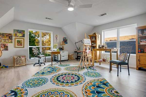 Step inside to a beautifully updated kitchen, dining, and living area, anchored by a cozy gas log fireplace. The home boasts two versatile secondary living spaces, a spacious office, and a primary suite with breathtaking lake views from a newly added covered balcony, perfect for morning coffee or evening sunsets.