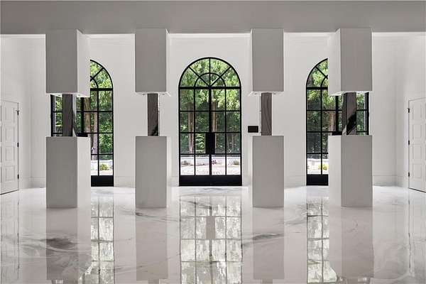 One of a kind home nestled on a private, hilltop lot on 2.3 acres. The picture of privacy, this traditional, stately residence offers four finished levels renovated in a chic greyscale palette, inspired by the clean, modern style of LA and Miami. A long, winding driveway leads you through mature, manicured landscaping to the crown of the hill, where this estate commands attention. Before reaching the home, you'll pass the sparkling gunite pool and expansive patio, as well as a professionally designed pickleball court--perfectly lit for day or evening matches and sure to impress any enthusiast. This dedicated pickleball space is not only a highlight of the property, but a rare luxury amenity in the area. Nearby, a playground and a charming gazebo offer additional outdoor enjoyment, along with a serene fountain to welcome you home.Through pairs of glass and iron doors, the grand foyer reveals a breathtaking staircase flanked by two elegant living spaces. The main level includes a tucked-away guest suite with custom closet and full bath, a formal dining room that opens to a balcony, and a show-stopping kitchen with rich dark cabinetry, honed countertops, stainless details, paneled appliances, dual dishwashers, a walk-in pantry with custom cabinetry, and a second refrigerator.Upstairs, a gallery hall leads to the main laundry, a secondary bedroom suite, and the luxurious Owner's suite. This retreat features a black marble-accented fireplace, a spa-worthy bath, a morning bar, and a private sitting room. The fourth floor offers two additional bedroom suites with sitting areas and full baths. The terrace level is a complete entertainment haven, featuring a fully equipped theater room, a full kitchen, two bedroom suites, a sauna, a billiards area, and direct access to multiple balconies and outdoor living spaces. This is more than a home--it's a lifestyle statement.