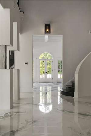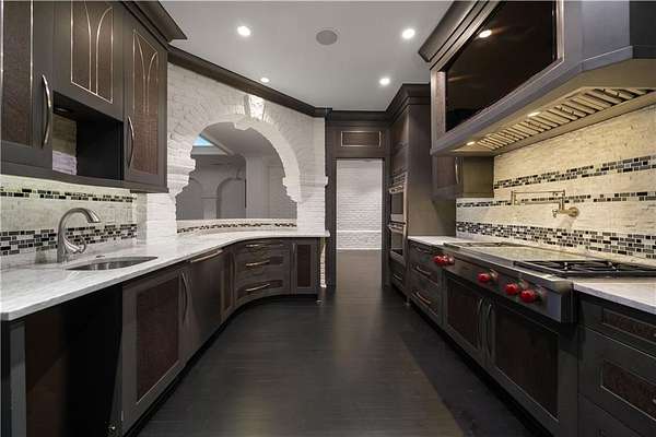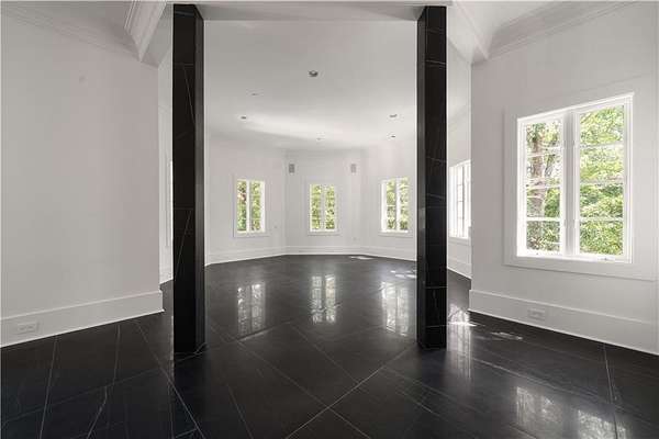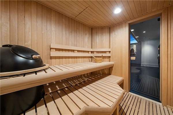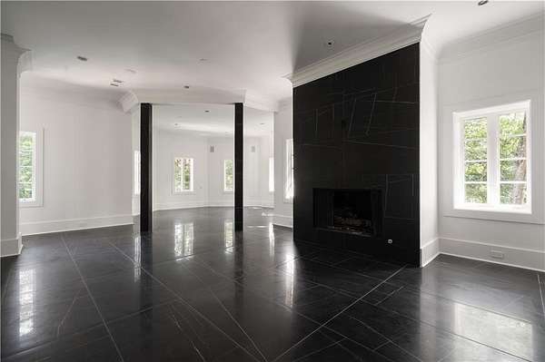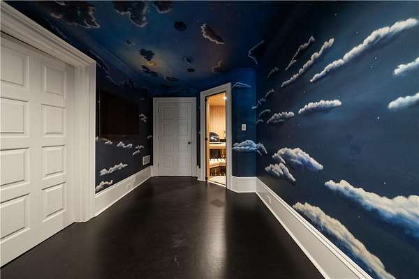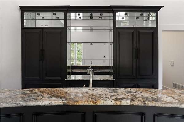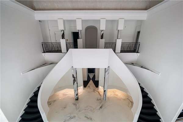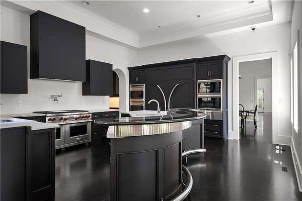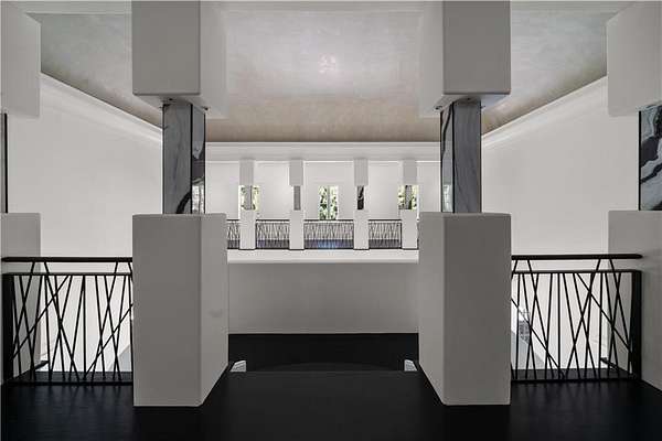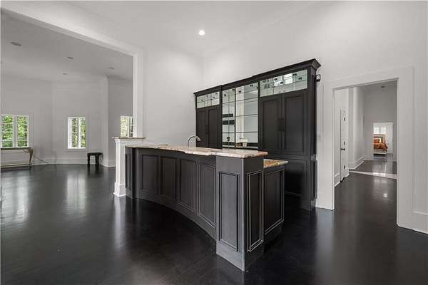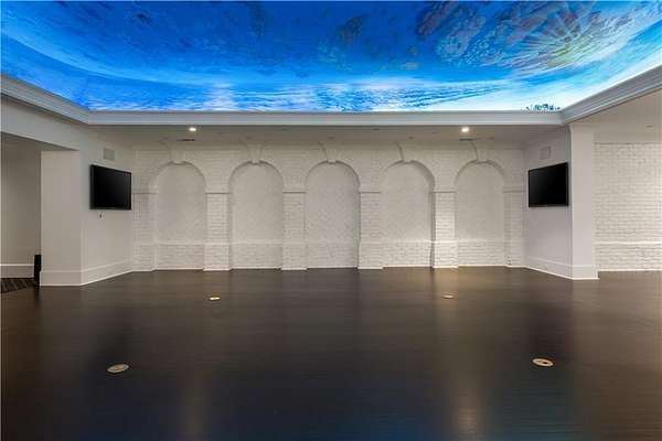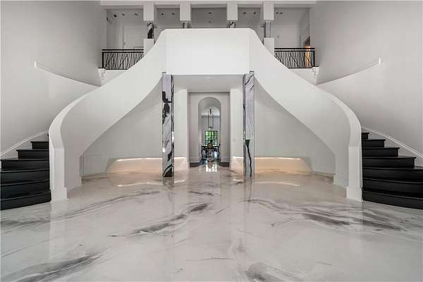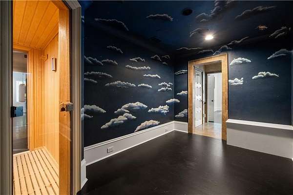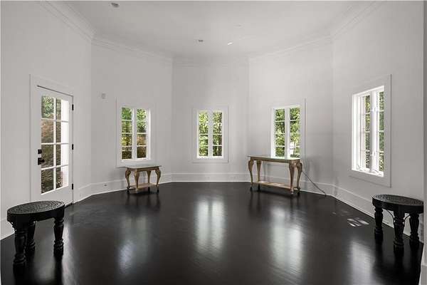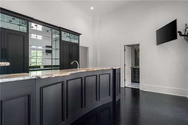 One of a kind home nestled on a private, hilltop lot on 2.3 acres. The picture of privacy, this traditional, stately residence offers four finished levels renovated in a chic greyscale palette, inspired by the clean, modern style of LA and Miami. A long, winding driveway leads you through mature, manicured landscaping to the crown of the hill, where this estate commands attention. Before reaching the home, you'll pass the sparkling gunite pool and expansive patio, as well as a professionally designed pickleball court-perfectly lit for day or evening matches and sure to impress any enthusiast. This dedicated pickleball space is not only a highlight of the property, but a rare luxury amenity in the area. Nearby, a playground and a charming gazebo offer additional outdoor enjoyment, along with a serene fountain to welcome you home.Through pairs of glass and iron doors, the grand foyer reveals a breathtaking staircase flanked by two elegant living spaces. The main level includes a tucked-away guest suite with custom closet and full bath, a formal dining room that opens to a balcony, and a show-stopping kitchen with rich dark cabinetry, honed countertops, stainless details, paneled appliances, dual dishwashers, a walk-in pantry with custom cabinetry, and a second refrigerator.Upstairs, a gallery hall leads to the main laundry, a secondary bedroom suite, and the luxurious Owner's suite. This retreat features a black marble-accented fireplace, a spa-worthy bath, a morning bar, and a private sitting room. The fourth floor offers two additional bedroom suites with sitting areas and full baths. The terrace level is a complete entertainment haven, featuring a fully equipped theater room, a full kitchen, two bedroom suites, a sauna, a billiards area, and direct access to multiple balconies and outdoor living spaces. This is more than a home-it's a lifestyle statement.