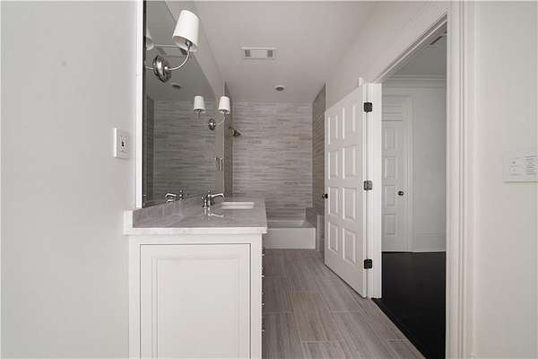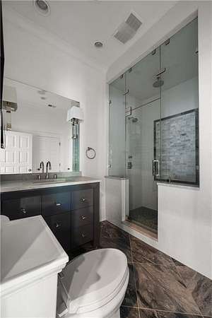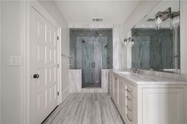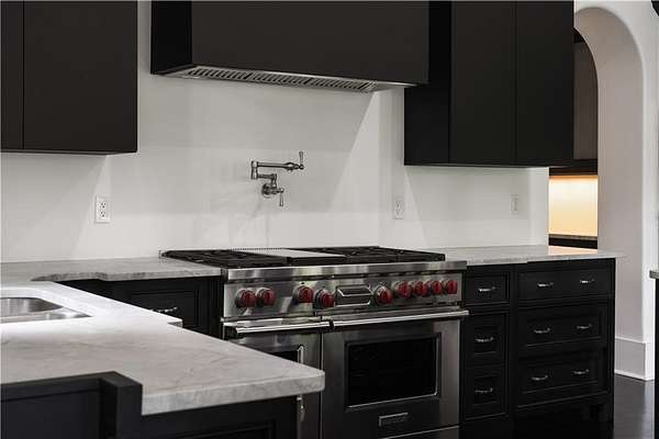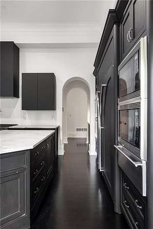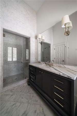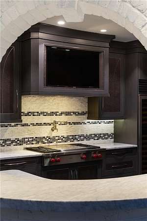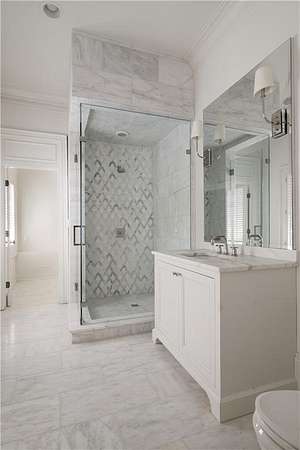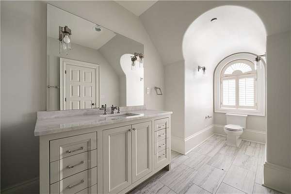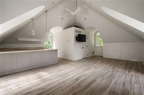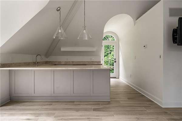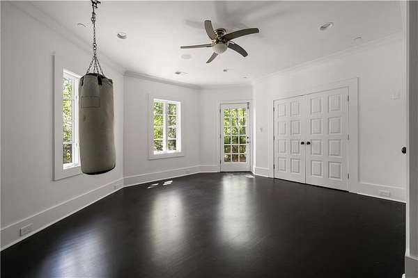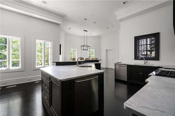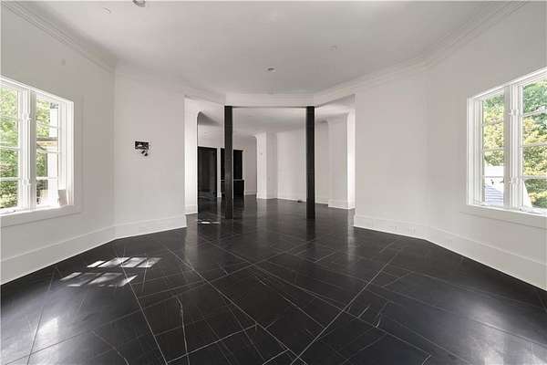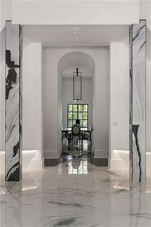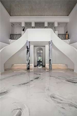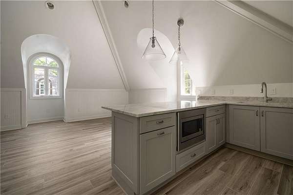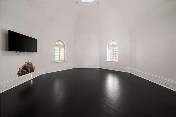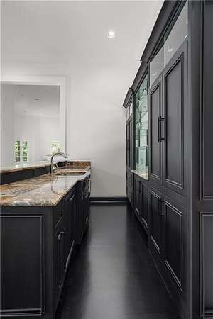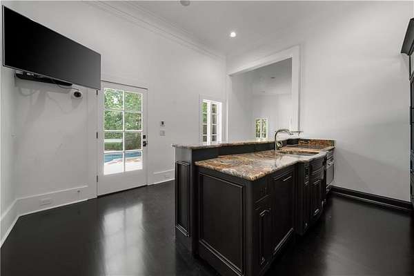One of a kind home nestled on a private, hilltop lot on 2.3 acres. The picture of privacy, this traditional, stately residence offers four finished levels renovated in a chic greyscale palette, inspired by the clean, modern style of LA and Miami. A long, winding driveway leads you through mature, manicured landscaping to the crown of the hill, where this estate commands attention. Before reaching the home, you'll pass the sparkling gunite pool and expansive patio, as well as a professionally designed pickleball court-perfectly lit for day or evening matches and sure to impress any enthusiast. This dedicated pickleball space is not only a highlight of the property, but a rare luxury amenity in the area. Nearby, a playground and a charming gazebo offer additional outdoor enjoyment, along with a serene fountain to welcome you home.Through pairs of glass and iron doors, the grand foyer reveals a breathtaking staircase flanked by two elegant living spaces. The main level includes a tucked-away guest suite with custom closet and full bath, a formal dining room that opens to a balcony, and a show-stopping kitchen with rich dark cabinetry, honed countertops, stainless details, paneled appliances, dual dishwashers, a walk-in pantry with custom cabinetry, and a second refrigerator.Upstairs, a gallery hall leads to the main laundry, a secondary bedroom suite, and the luxurious Owner's suite. This retreat features a black marble-accented fireplace, a spa-worthy bath, a morning bar, and a private sitting room. The fourth floor offers two additional bedroom suites with sitting areas and full baths. The terrace level is a complete entertainment haven, featuring a fully equipped theater room, a full kitchen, two bedroom suites, a sauna, a billiards area, and direct access to multiple balconies and outdoor living spaces. This is more than a home-it's a lifestyle statement.