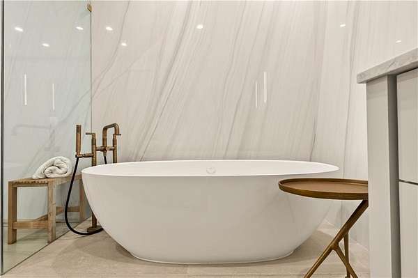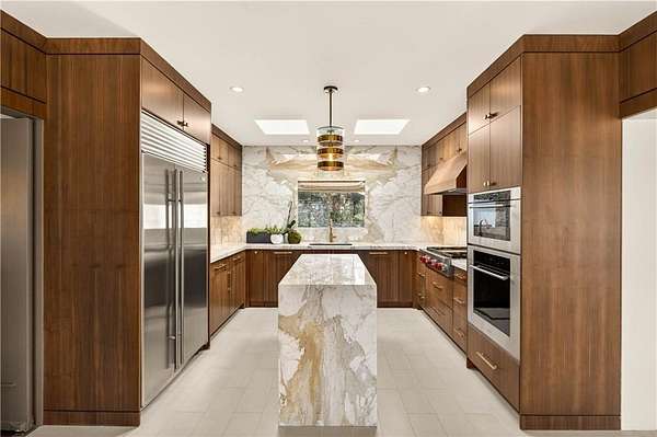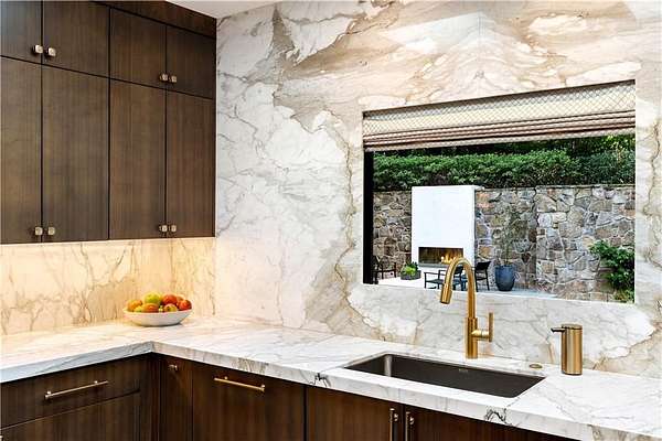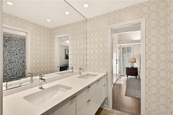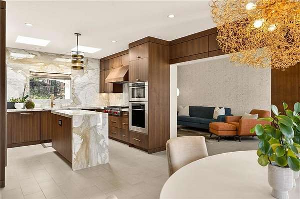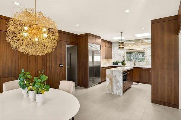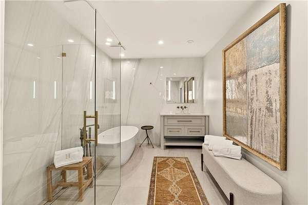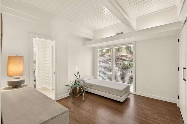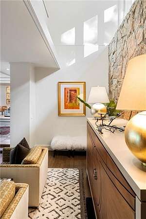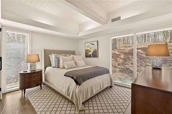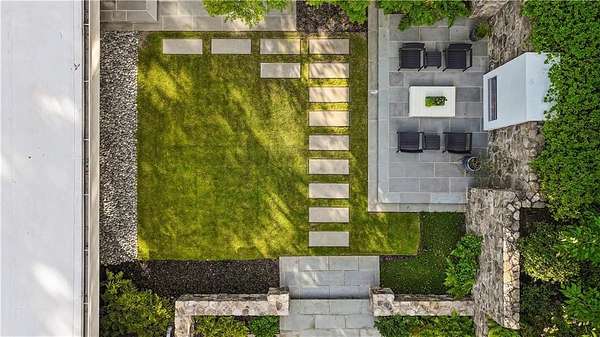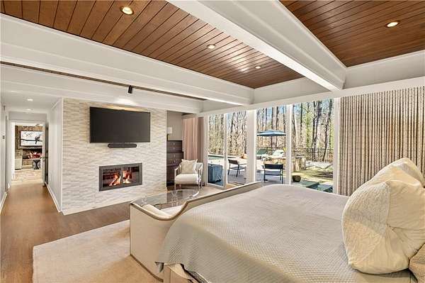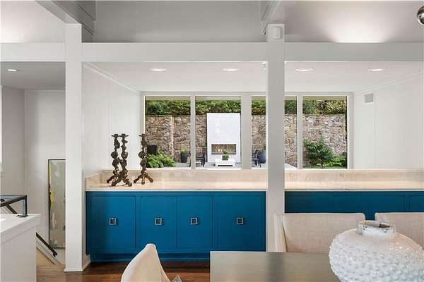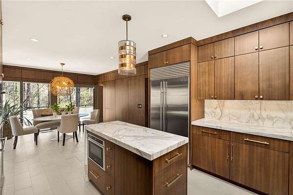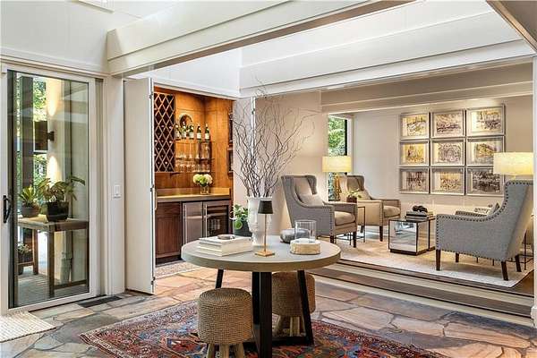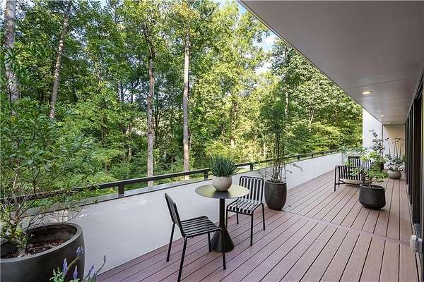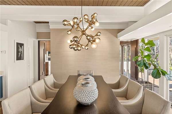 Nestled on an extraordinarily private 2.33-acre estate in the coveted Winterthur community, this architectural jewel is discreetly positioned in the heart of Sandy Springs-offering a rare convergence of provenance, design pedigree, and resort-caliber grounds. Originally conceived as the personal residence of renowned architect Robert Green, protege and direct understudy of Frank Lloyd Wright, the home has been masterfully reimagined under the direction of acclaimed architect Rodolfo Castro-preserving its midcentury integrity while elevating it to a standard of modern luxury. A gated approach and a long and meandering newly constructed driveway set the tone for the arrival experience, framed by extensive, thoughtfully executed landscape and hardscape design by Bellwether Landscapes. The grounds are nothing short of extraordinary-featuring newly installed stone walls, expansive patios, a courtyard terrace with a statement fireplace, an extended level lawn, and a breathtaking 75-foot heated lap pool that anchors the outdoor living experience. Upon entry through striking steel and glass doors, interiors are immediately illuminated by an oversized skylight, casting natural light across the home's refined architectural lines. The fully renovated kitchen is appointed with custom solid walnut cabinetry, Calacatta Gold countertops, and a suite of professional-grade appliances. Seamlessly integrated, the kitchen flows into an inviting breakfast room, a fireside keeping room, and an adjoining office. Four generously proportioned bedrooms reside on the main floor, each served by two impeccably renovated full baths. A dramatic stair hall descends to the terrace level, where the home's architectural character is on full display. Here, original wood paneling has been meticulously preserved, showcased in a vintage wet bar, a raised living area, and a striking sunken family room centered around a stone fireplace with a built-in sectional-an iconic midcentury design moment. The terrace level also hosts a richly paneled fireside den, ideal as a private study or retreat, complete with a newly installed sauna. Tucked away for ultimate privacy, the primary suite is a true sanctuary-featuring dual walk-in closets and a spa-caliber bath with dual vanities, a freestanding soaking tub, and a frameless glass shower, all executed with a refined, contemporary sensibility. Every principal room along the rear elevation opens to the exceptional outdoor environment, blurring the line between interior and exterior living. Expansive patios provide ample space for dining and lounging, while the manicured lawn offers a rare, usable expanse ideal for recreation. With five bedrooms, three full and one half baths, approximately 4,500 square feet, and a three-car garage, this residence represents a once-in-a-generation opportunity to own one of metro Atlanta's most architecturally significant midcentury homes-thoughtfully restored, meticulously curated, and impossibly private.