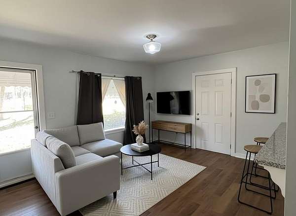 Discover this charming, beautifully-remodeled, all-brick bungalow nestled in the heart of thriving South Fulton. Filled with natural light and thoughtful updates, this inviting 2BR, 1BA home blends classic character with modern comfort. Step inside to find luxury vinyl flooring throughout, leading you into a bright and airy white kitchen featuring crisp cabinetry, stylish tile backsplash and ample space for cooking and gathering. The refreshed full hall bath showcases clean, white tile, a traditional tub/shower combo and timeless finishes that create a spa-like feel. Both bedrooms offer comfortable layouts and plenty of natural light - perfect for peaceful rest or a convenient home office. Situated on a large, private lot, this property provides room to relax, garden or entertain, and includes a parking pad for easy off-street parking. The location truly can't be beat - just minutes from I-285, I-85, Hartsfield-Jackson International Airport, Camp Creek Marketplace, shopping, schools, parks and more. This bungalow delivers charm, convenience and exceptional value in one of Atlanta's fastest-growing areas. Move-in ready and waiting for you!
