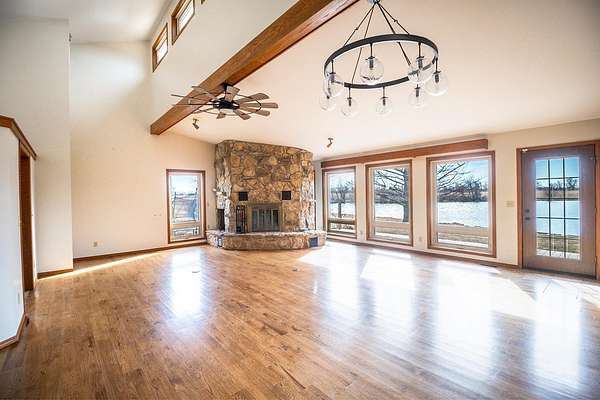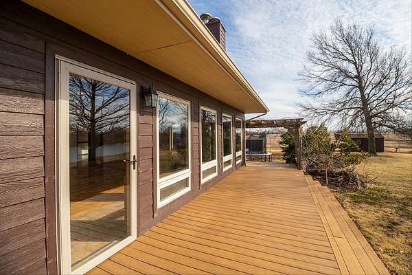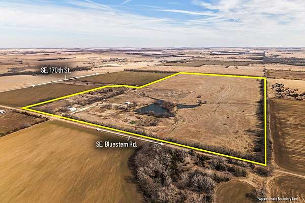 Property offered at ONLINE ONLY auction. BIDDING OPENS: Tuesday, March 10th, 2026 at 2 PM (cst) | BIDDING CLOSING: Thursday, March 19th, 2026 at 2:10 PM (cst). Bidding will remain open on this property until 90 seconds have passed without receiving a bid. Property available to preview by appointment. CLEAR TITLE AT CLOSING, NO BACK TAXES. ONLINE ONLY AUCTION!!!: Flint Hills Edge Estate - 93+/- Acres of Rolling Prairie with Stocked Pond and Custom Amenities Discover a rare opportunity to own a pristine country estate where the untamed beauty of the Flint Hills meets modern comfort and accessibility. Situated on nearly 94 acres of rolling native prairie and improved pasture, this exceptional property offers the perfect balance of rural seclusion and convenient access-less than half a mile to pavement and just 30 minutes to east Wichita. A Home Designed for the View The moment you step inside this thoughtfully designed 3-bedroom, 3-bathroom residence, your eyes are drawn to what makes this property truly special: a nearly 2-acre stocked pond with its own island, perfectly framed by expansive windows that flood the home with natural light and bring the outdoors in. The heart of the home features an open-concept living room, kitchen, and dining area anchored by a striking stone wood-burning fireplace with gas starter. Real wood floors flow seamlessly throughout the main level, adding warmth and character to every step. The kitchen stands ready for both daily life and entertaining, showcasing granite countertops, a spacious eating bar, a gas range, and all appliances included. The main-level master suite offers a private retreat with direct deck access and a spa-inspired ensuite bathroom featuring dual vanities, a clawfoot soaking tub, a separate tiled shower, and a skylight that bathes the space in natural light. An additional bedroom and full bathroom on the main level provide convenience for guests or family members who prefer single-level living. A dedicated main-floor laundry room with utility sink adds practical convenience to everyday living. The lower level expands your living space with a generous family room complete with a second fireplace, a large bedroom with double closets and cedar closet, and a third full bathroom. The walkout basement opens directly to the backyard, where a wrap-around composite deck provides the perfect perch to take in sweeping views of the pond and pasture beyond-your front-row seat to breathtaking sunsets and abundant wildlife. Versatility Meets Function This property is designed to adapt to your vision. Whether you're an equestrian enthusiast, a cattle rancher, a hunter, or simply someone seeking a private recreational retreat, the infrastructure is in place. An open area provides ample space for an arena, should you choose to develop one for training and riding. The 40*30 three-wall barn, constructed in 2018, offers modern covered storage or livestock shelter close to the home. A loafing shed and round-top 24*24 building with concrete floor add further flexibility for equipment, hay, or animals. Near the property entrance stands a versatile 48*42 building, updated with newer siding and roof. Legal Description: S33, T28, R06E, ACRES 93.4, BEG 860.36S NW/C E1107 SE209 S236 E1400.76 S1356.84 W2658.11 N1796 TO POB LESS ROW. *Buyer should verify school assignments as they are subject to change. The real estate is offered at public auction in its present, "as is where is" condition and is accepted by the buyer without any expressed or implied warranties or representations from the seller or seller's agents. Full auction terms and conditions provided in the Property Information Packet. Total purchase price will include a 10% buyer's premium ($2,500.00 minimum) added to the final bid. Property available to preview by appointment. Earnest money is due from the high bidder at the auction in the form of cash, check, or immediately available, certified funds in the amount of $45,000.