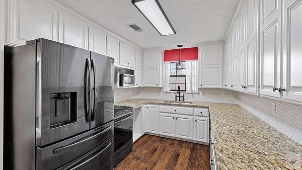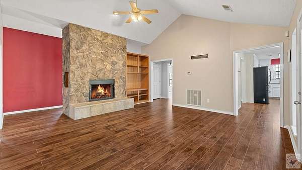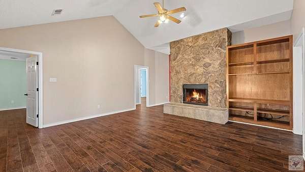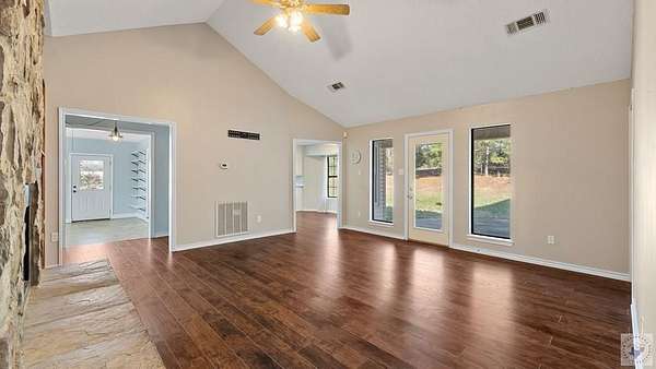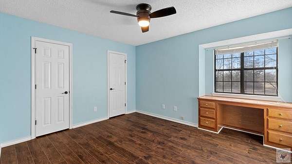 Fresh, spacious, and full of character, this beautiful home sits on approximately 9 acres with a pond, offering the perfect blend of comfort and country living. Inside, you'll find two generous living areas, including a cozy den with a stunning rock fireplace, built-in bookcase, and warm wood laminate flooring throughout. The kitchen is designed for both style and function, featuring granite countertops, stainless steel appliances, and a huge walk-in pantry for exceptional storage. The primary bedroom includes a built-in desk, ideal for a home office or study space, along with large closets throughout the home for ample storage. Enjoy outdoor living on the patio overlooking the peaceful acreage, perfect for entertaining or relaxing. Additional features include a shop and separate storage building, making this property ideal for hobbies, equipment, or extra workspace. This well-maintained, fresh home offers space, functionality, and a beautiful rural setting-an excellent opportunity for those seeking privacy without sacrificing modern conveniences.