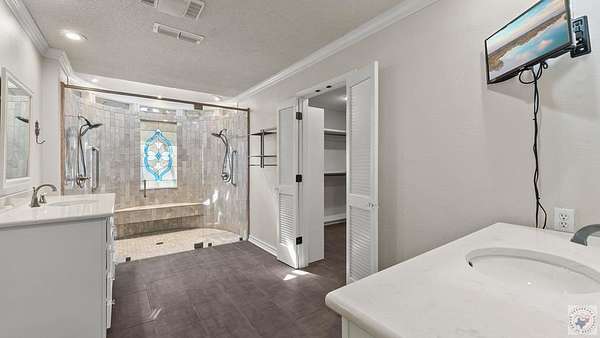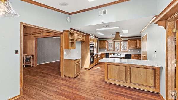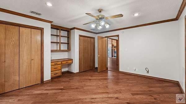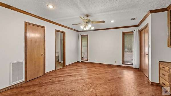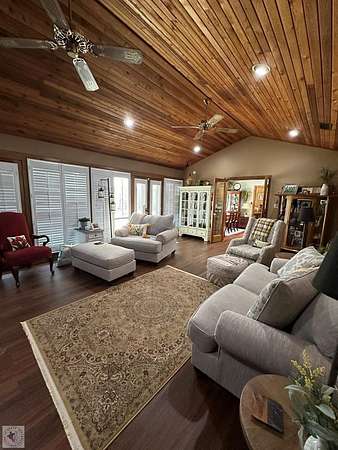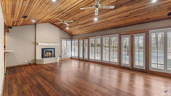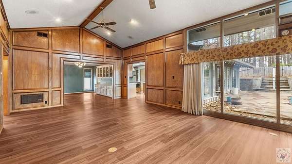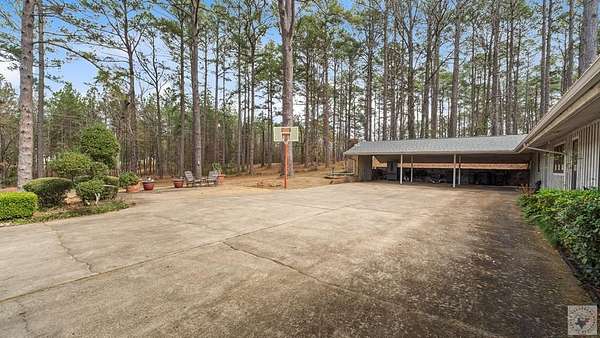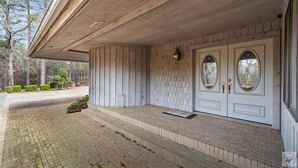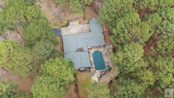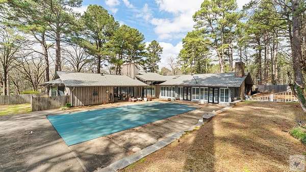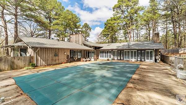 A Luxury Modern Ranch with a Mid-Century Flare on 8.89 Wooded Acres with Pool & Privacy set on a private hilltop inside the city limits, this elegant Modern ranch offers 4 bedrooms, 3.5 baths, and approx. 3,475 sq ft of light-filled living space on nearly 9 secluded, pine-studded acres. Low-slung rooflines, natural wood siding, and floor-to-ceiling windows create a timeless connection to the outdoors. An open, easy-flow layout is ideal for everyday living and entertaining, with panoramic wooded views from multiple rooms. The Grand living room with vaulted wood ceilings and brick fireplace, The Den with rich paneling is perfect for reading, media, or a refined home office. The Centrally located chef's kitchen that anchors the living/dining flow. A Formal dining room with classic detailing including a built-in hutch. The Spacious primary suite with large dual walk-in closet and spa-style ensuite. Secondary bedrooms offer versatility for guests, hobbies, or work. The home features hardwood and luxury engineered flooring, Plantation shutters and crown molding, Skylights, recessed lighting, and ceiling fans, Floor-to-ceiling windows framing wooded views, Outdoor Living in the Sun-drenched pool area shaded by mature pines, Broad deck for grilling and gatherings, Fully fenced backyard for play, pets, and gardening, Peaceful breezes and treetop vistas from the hilltop setting. All this just a mile from town. Located 30 miles from Texarkana, 50 miles from Shreveport and just 2 1/2 hours from Dallas.