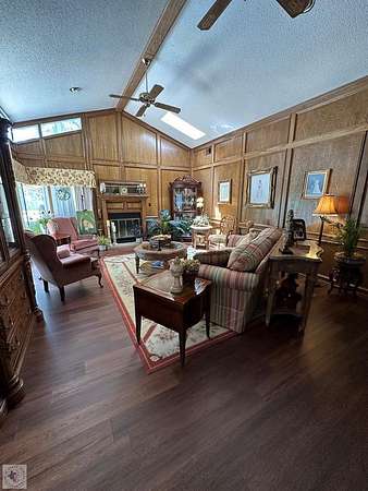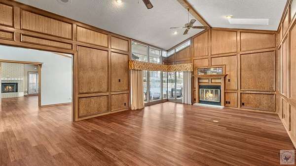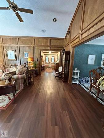 - Ceiling Fan(s), High Ceilings, Paneling, Sheet Rock Walls, Wallpaper, Wet Bar