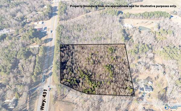 Est $811/mo10 ACRES +- of usable land right on highway 431 North in Attalla offering privacy, flexibility, and multiple potential uses. A rare find with endless possibilities.