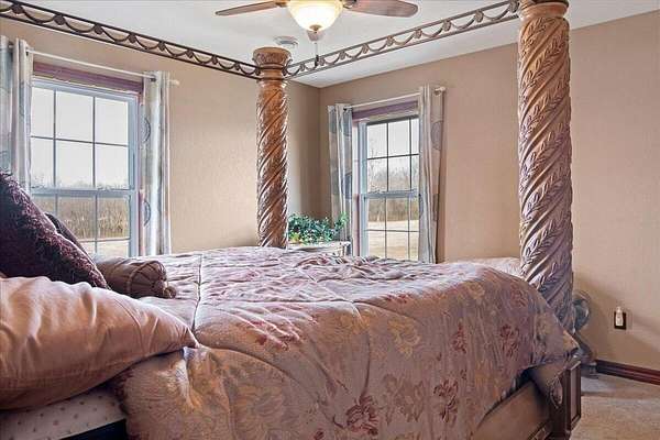 Your hobby farm is ready and waiting for you and your family! Situated on 10 acres m/l, this beautiful story-and-a-half home with a full basement offers space, comfort, and quality throughout.Custom built with high-end materials, the home features engineered hardwood floors, granite countertops, and custom cabinetry. The heated and cooled sunroom is the perfect place to relax and take in peaceful views of your acreage year-round.The main-level primary suite offers convenience and privacy. Upstairs you'll find two additional bedrooms, while the finished basement includes two more bedrooms and is wired for audio and video -- ideal for entertaining or creating the ultimate media space.The entire home is equipped with a surveillance system for added peace of mind.Outside, you'll love the 60x40 shop with 220 electric and a newer 50x30 metal barn -- perfect for equipment, hobbies, livestock, or storage.This property offers the perfect blend of comfort, functionality, and country living -- all ready for its new owners.