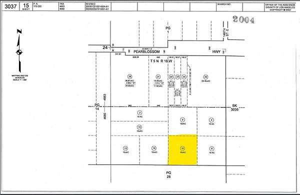 Est $445/mo10.09 acre lot in Pearblossom zoned A25 for agriculture, animals, and orchards. The south end of the lot borders government public lands. APN 3037-015-010.