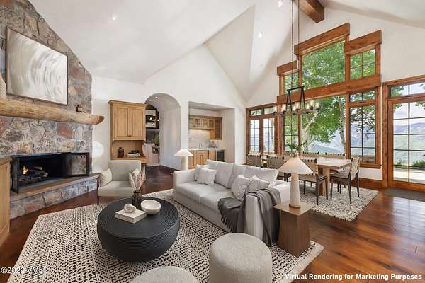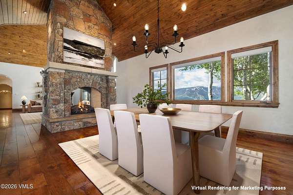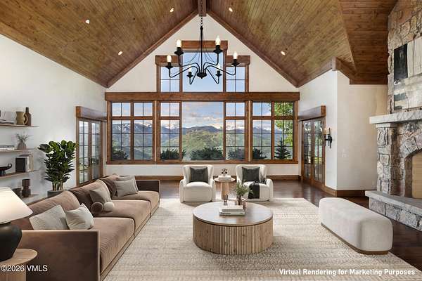 Perched on 4.5 private acres within the exclusive gated community of Mountain Star, this elegant mountain residence offers breathtaking panoramic views of Beaver Creek and the sweeping valley below. Bordered by protected open space, the setting is as tranquil as it is dramatic - Colorado mountain living at its finest. Designed with timeless craftsmanship and classic mountain style, the home features vaulted ceilings, rich wood accents, and expansive windows that frame the distant peaks of the Sawatch Range. The spacious great room centers around a striking two-sided stone fireplace, setting the tone for warmth and grandeur. This ranch-style layout embraces main-level living, with the primary suite, office, formal dining room, and two guest bedrooms thoughtfully located on the main floor. A well-appointed kitchen flows effortlessly into a cozy breakfast nook and family room - perfect for everyday living and family gatherings. Two additional bedrooms upstairs share a private balcony, offering ideal separation for guests or family. Multiple outdoor living spaces invite you to soak in serene summer evenings beneath the aspen canopy, while the seamless indoor-outdoor flow enhances relaxation year-round. Conveniently located just minutes from Avon and the vibrant offerings of the Vail Valley, this home also includes the option for a coveted Vail Mountain Club social membership, complete with ski locker access for effortless connection to world-class skiing. Additional highlights include a brand new Brava synthetic roof installed in October 2025. The home is located within a community overseen by an on-site caretaker, providing year-round peace of mind and enhancing the pristine environment. Considered one of the premier homesites in all of Mountain Star, this property offers an extraordinary blend of luxury, privacy, and natural beauty - an exceptional opportunity in the heart of the Vail Valley.