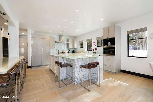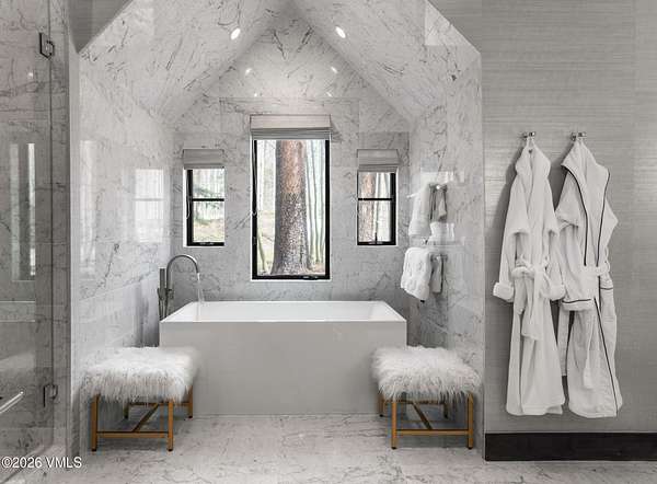 Re-imagined and newly refurbished from the comfortable fawn colored suede sofas up to the warm, taupe-colored walls throughout. Experience luxury mountain living in this beautifully remodeled single-family home, nestled in the prestigious gated community of Mountain Star. Enjoy postcard-worthy views of Beaver Creek Resort's ski slopes from nearly every room, thanks to the private lot and surrounding open spaces. Step inside to a thoughtfully designed floor plan, featuring high-end finishes throughout. The main level is ideal for entertaining, with European oak engineered flooring, radiant heat and a great room showcasing expansive windows and a striking wood-burning fireplace with Silver Wave marble surround from Brazil. The dining room features a Zebrino marble fireplace, comfortable seating while the adjoining hearth room and a stunning, gourmet kitchen provide for a perfect space for gatherings. The kitchen is equipped with a Statuario Elegante Italian marble island and hand-crafted art glass, high-end appliances, breakfast nook, bar seating and direct access to a large, south-facing heated patio with stunning views of aspens and the mountains beyond. Additional main-level highlights include a glass-encased, climate-controlled wine display and a laundry room with new appliances. The spacious and sunny master suite offers a gas fireplace, dual closets, a spa-like bathroom with soaking tub and oversized steam shower, plus private outdoor access. Upstairs, a glass-paneled banister leads to four additional bedrooms--including a large junior master--all with en-suite bathrooms and walk-in closets. A generous family room provides the perfect space for relaxation or entertaining guests. The home also features a heated courtyard and a three-car garage with epoxy floors. Offered designer furnished for turnkey living, DaVinci synthetic roof.