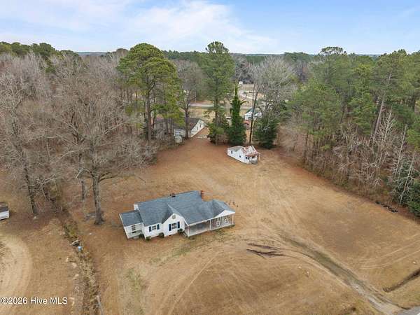 Discover the perfect blend of country living and endless potential at 3825 NC 102 E. This 2-bedroom, 1-bath home retains its midcentury character with a cozy fireplace in the living room and a formal dining room perfect for gatherings. While the interior is ready for a fresh modern touch, the layout offers a solid foundation for your vision. Enjoy morning coffee on one of the two covered porches or utilize the expansive 1.5-acre lot for gardening or play. Located in the Chicod/Conley school district. Bonus Feature: A detached 16.5' x 28' building with a metal roof and half-bath (previously used as an office) offers a potential space for a home business, studio, or workshop.