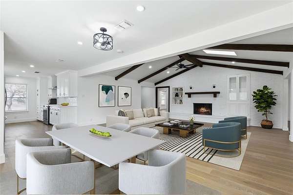 Nestled on a sprawling 10-acre lot behind a gated entrance, this stunning four-bedroom home has been completely remodeled in 2025! Offering a brand-new interior with modern luxury throughout. Just completed and move-in ready, this exceptional property is designed for both comfort and entertaining. Step inside to an impressive living room featuring vaulted, beamed ceilings, a striking white brick fireplace flanked by built-ins, and a stylish wet bar complete with a beverage fridge and sink--perfect for hosting. Rich luxury hardwood floors and crisp white walls create an inviting, contemporary ambiance. The open-concept design seamlessly connects the living, dining, and game areas, making this home ideal for gatherings. The spacious dining area easily accommodates a large table and chairs, while the gourmet kitchen impresses with white cabinetry, all-new stainless steel appliances--including an electric range with a vent, beverage fridge, refrigerator, and dishwasher--plus a sleek white tile backsplash. A generously sized game room opens to the backyard, enhancing the home's entertainment potential. A full-size utility room with built-in cabinetry adds convenience. Additionally, a private study offers the flexibility to serve as a guest bedroom. The expansive primary suite boasts an en-suite bath with dual vanities, a separate shower, and a walk-in closet. The spacious guest bedrooms ensure comfort for family and visitors alike. Beyond the home, the outdoor space presents endless possibilities. A charming gazebo with a large deck, a storage shed, a barn, and a four-car garage await your creative touch. With this sought-after location and a completely updated home, this estate is a rare find!