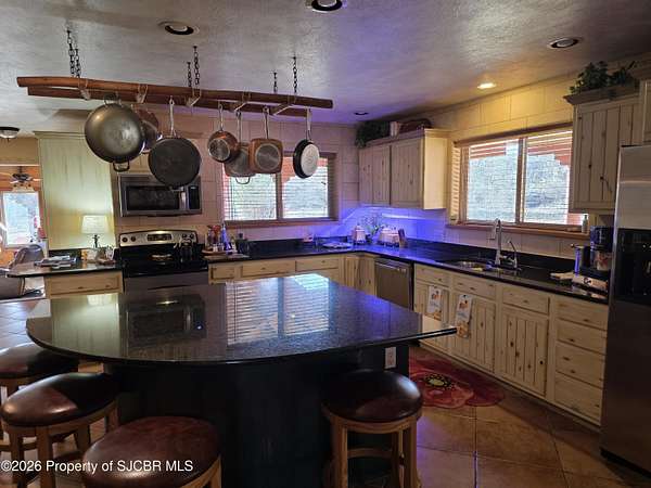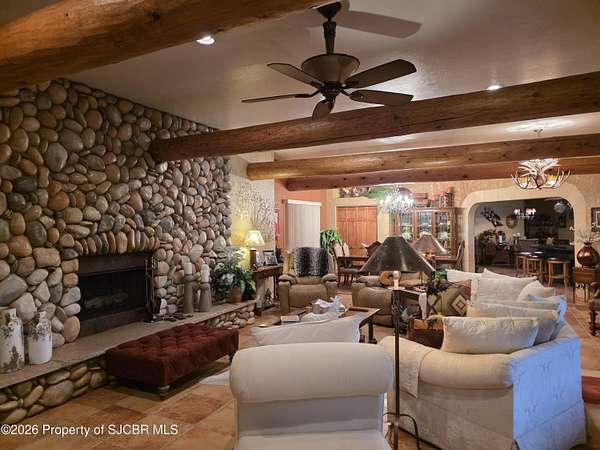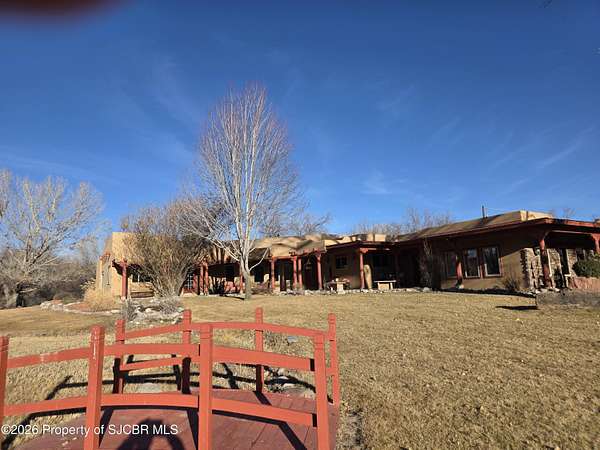 Stunning Animas River Country Estate on Nearly 18 AcresWelcome to a rare opportunity to own a private country estate along the beautiful Animas River, just minutes from Aztec and equally close to Durango, Colorado. Set on nearly 18 acres, this exceptional property offers privacy, space, and versatility in a truly breathtaking setting.The home features over 4,000 square feet of living space, plus an expansive 1,500 sq ft garage, ideal for vehicles, equipment, or recreational toys. Recent exterior updates include new stucco and fresh paint, and the roof is less than 10 years old, offering peace of mind for years to come.Designed for both everyday living and large gatherings, this property is perfect for entertaining and family events, with ample parking and plenty of room to accommodate a crowd. A privacy fence with gated entry and remote opener ensures security and seclusion.Animal lovers will appreciate that horses, cattle, and other livestock are welcome, and the land is already equipped with a barn, shop, and a peaceful pond. Wildlife is abundant, adding to the serene country atmosphere.This is a one-of-a-kind property that combines rural freedom, modern comforts, and unbeatable access to nearby towns--perfect for those seeking space, privacy, and the true Southwest lifestyle.
