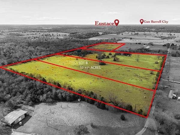 This 11.01-acre property is ideal for those seeking a spacious piece of land. Located in the highly sought-after Henderson County, specifically in Eustace off CR 2911, the roads leading to the property are well-maintained. It is just an hour away from Dallas and offers easy access to Tyler, as well as convenient proximity to HWY 175, providing straightforward routes to major cities. The land is currently used for hay production and features some fencing and cross-fencing, surrounded by attractive ranches and large homes. You will need to install your own septic system, and electricity is available on the road. The property lies within the CARRIZO-WILCOX aquifer district, making well water the best option, similar to what Ozarka uses. Additional acreage is available, and the property boasts extensive road frontage and sufficient space to build while maintaining agricultural status, with one acre set aside for a home. Located within the award-winning Eustace ISD, this property offers an excellent opportunity to create a beautiful homestead. There are no known restrictions on the property. If you're considering building on the land, we have a lender who can finance both the land purchase and home construction in one transaction with a low down payment. Options include VA Zero Down, FHA 3.5% Down, or Conventional 10% Down. Call for more details.