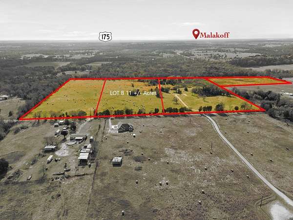 This 11.00+/--acre property is ideal for those seeking a spacious piece of land. Located in the highly sought-after Henderson County, specifically in Eustace off CR 2911, the roads leading to the property are well-maintained. It is just an hour away from Dallas and offers easy access to Tyler, as well as convenient proximity to HWY 175, providing straightforward routes to major cities. The land is currently used for hay production and features some fencing and cross-fencing, surrounded by attractive ranches and large homes. You will need to install your own septic system, and electricity is available on the road. The property lies within the CARRIZO-WILCOX aquifer district, making well water the best option, similar to what Ozarka uses. Additional acreage is available, and the property boasts extensive road frontage and sufficient space to build while maintaining agricultural status, with one acre set aside for a home.