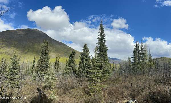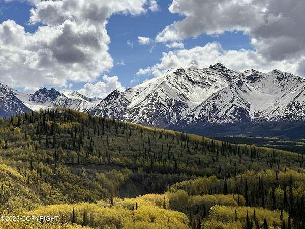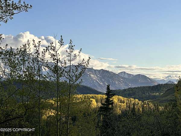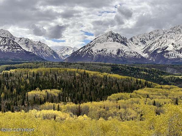Est $3,506/mo40 acres with mountains all around! Near Matanuska Glacier. Beautiful, pristine setting. Near Mile 99 on the Glenn Hwy in Glacier View. Enjoy wildlife viewing and the quiet setting this area is renowned for.