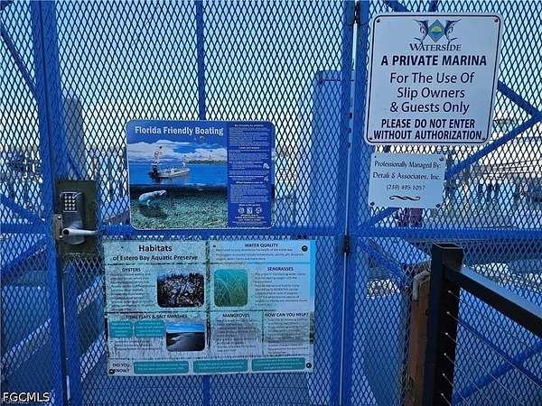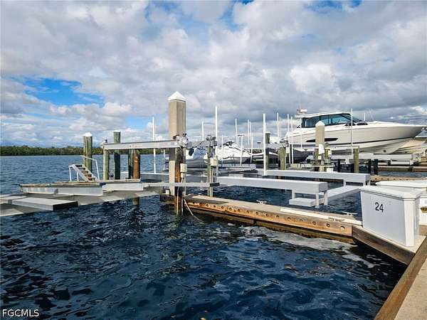 55' BOAT SLIP (B24) AT WATERSIDE - 40,000 pound LIFT INCLUDED & DIRECT GULF ACCESS Exceptional opportunity to own a 55' deep-water floating concrete boat slip (B24) in the highly desirable Waterside at Bay Beach community, located at 4187 Bay Beach Lane, Fort Myers Beach. Designed for convenience and performance, this slip includes a 40,000 LB boat lift, providing secure and efficient storage. Positioned for easy navigation, boaters will appreciate quick, unobstructed access to Estero Bay and the Gulf, reaching the Gulf in just minutes. Dock B24 is ideally located just steps from parking and near the dock entrance, allowing for effortless boarding and day-to-day use. The gated Bay Beach community offers controlled access, enhancing privacy and security. Nearby marinas and services provide convenient access to fuel, bait, and supplies, making this an excellent option for both recreational and serious boaters. Boat cooperative ownership with automatic renewal of submerged land lease. Quarterly fee of $880 includes water and private gate access; electricity is individually metered. A 6.5% Florida transfer tax applies, to be split equally between buyer and seller at closing. Ownership restricted to Bay Beach Lane condominium owners.