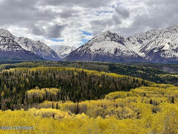 Est $2,996/mo40 acres with mountains all around! Near Matanuska Glacier. Beautiful, pristine setting. Near Mile 99 on the Glenn Hwy in Glacier View. Enjoy wildlife viewing and the quiet setting this area is renowned for. Very quiet, beautiful land.