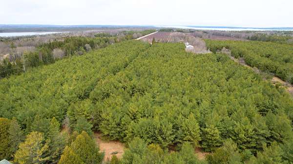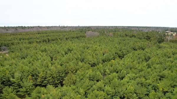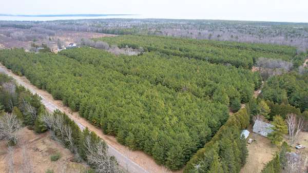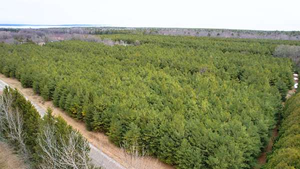 The property consists of approximately 9.95 acres of fully wooded land in Baileys Harbor. The terrain is covered with a mix of mature trees, allowing for selective clearing to accommodate a home, driveway, and other uses. Access is provided by paved frontage along Sunset Drive, and power is available at the lot line. A well and septic system would be required for water and wastewater, and a perc test has been completed supporting a home with four or more bedrooms.