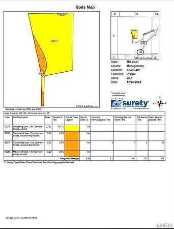 Est $1,836/mo26.5+/- acres of scenic land with excellent homesite potential! This gently rolling property is located just 18 miles south of Bowling Green and 3 miles east of Middletown, Missouri. It features 21.5+/- tillable acres, abundant wildlife, and a small pond. Taxes are currently based on the original 81+/-acre parent tract. Additional acreage is also available.