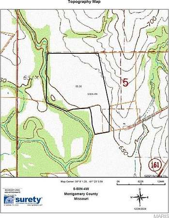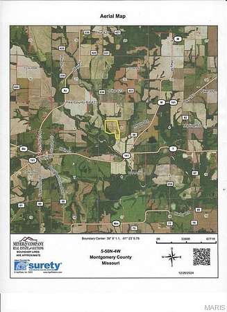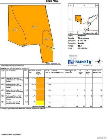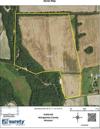 55.3+/- acre parcel located just east of Middletown, MO, offering approximately 44+/- acres of tillable land. The western border is lined by Sandy Creek, adding a scenic water feature. Abundant deer activity is evident throughout the property. Includes some floodplain areas along the western and southern boundaries. Additional acreage options are available.