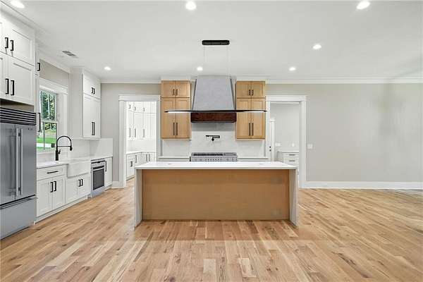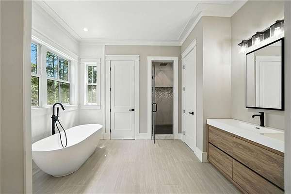 APPRAISAL IN HAND!! Exceptional New Construction Estate in The Highlands at Sharp Mountain! Experience elevated living in this newly constructed almost 5,038 sq ft estate, where bespoke design meets refined elegance in one of North Georgia's most exclusive gated communities. Set on 5 pristine acres within The Highlands at Sharp Mountain, this architectural showpiece commands attention with its striking black exterior, timeless brick accents, expansive covered front porch, rear veranda, and oversized three-car garage-a bold statement of modern sophistication. Step inside to a light-filled, open-concept interior where wide-plank real white oak hardwoods lead you through a seamless flow of curated living spaces. The expansive family room anchors the heart of the home, while the chef's kitchen impresses with Wolf and Sub-Zero appliances, custom cabinetry, a dramatic quartz island, and a fully equipped secondary prep kitchen, a bar hall with a wine and beverage cooler-designed for effortless entertaining. The main-level owner's suite is a private sanctuary, featuring a spa-inspired bathroom and generous walk-in closets with seller offering a $10k allowance toward closets customization. An additional main-level guest suite with a full bath, along with a stylish powder room, offers comfort and convenience for visitors. A spacious laundry room connects to a secondary staircase that leads to a private guest suite above the garage, complete with its own full bath-ideal for multi-generational living or a private office. Upstairs, two thoughtfully designed bedrooms each offer en-suite baths, providing a perfect blend of comfort and privacy. The full, unfinished terrace level-over 3,000 sq ft-invites endless possibilities, from a custom home theater or fitness center to a workshop or expanded storage. Some additional features are a Daikin Smart System for HVAC, as well as a Rinnai Tankless Water Heater! Located within an intimate enclave of just 21 estate-sized homesites, this home offers a rare combination of seclusion and accessibility-just minutes from historic downtown Ball Ground, top-rated schools, I-575, Canton Marketplace, Northside Hospital, and the scenic beauty of the North Georgia mountains. Luxury, privacy, and convenience-reimagined. Welcome home.