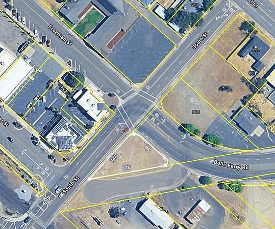 Hwy 273 exit on South Street heading east, turn right on Balls Ferry. Property is on the southwest corner of Balls Ferry and South Street.