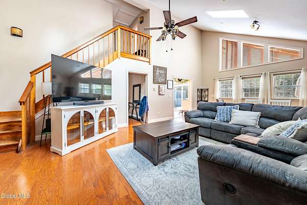 Experience the perfect blend of privacy and convenience at 9 Conans Run, just minutes from the charming village of Ballston Spa. Nestled at the end of a peaceful private road, this 1,600+ square foot home sits on 1.5 acres of serene beauty. In winter, cozy up by the pellet stove in the stunning great room with its soaring vaulted ceiling. Watching the snow blanket the landscape outside. When summer arrives, retreat to the spacious deck, where the soothing sounds of a babbling creek create your own tranquil oasis. All appliances included (except washer & dryer). Shed sold as-is. Your private escape awaits! Schedule your showing today!