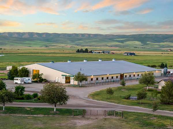 Experience luxury equestrian living at Knox Farm Equine Center in Chesterfield, Idaho! This premier commercial equine training and breeding facility on 80± acres boasts a 7000 sq. ft. custom-built home featuring 2 master suites, sunroom with an Endless pool. The estate's centerpiece is a 32,000 sq. ft. barn with indoor arena, 11 finished indoor stalls, vet and feed rooms, staff apartment/lounge, and Hay/equipment storage. The grounds are thoughtfully divided into outdoor arenas, pasture paddocks, large open pastures, and a 2 1/2 acre training field. Guests can stay in the cozy 1 bed, 1 bath guest house. Don’t miss your chance to own this exceptional equestrian estate offering a top-notch facility that's conveniently located near amenities yet secluded enough to provide plenty of privacy. https://fayranches.com/property/knox-farm-equine-center-idaho/