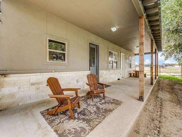 Exceptional opportunity to build your dream home in Bandera while already enjoying life on the property! Plans for a permanent residence are available upon request. This stunning 1,500 sq. ft. barndominium includes 500 sq. ft. of living space with a full kitchen, bath, and a covered patio, plus an oversized double garage with an extended bay. Bridlegate's gated community permits full-time barndominium living while you build, or it can serve as a hill country retreat. Neighborhood amenities include a private 50-acre owners park with 3/4 mile of Medina River access, 2 pools, tennis courts, soccer and baseball fields, volleyball court, a gym with showers, 2 clubhouses, and rentable guest suites. Bridlegate is Bandera's premier community, offering the perfect setting for a Hill Country forever home or a weekend escape.