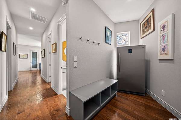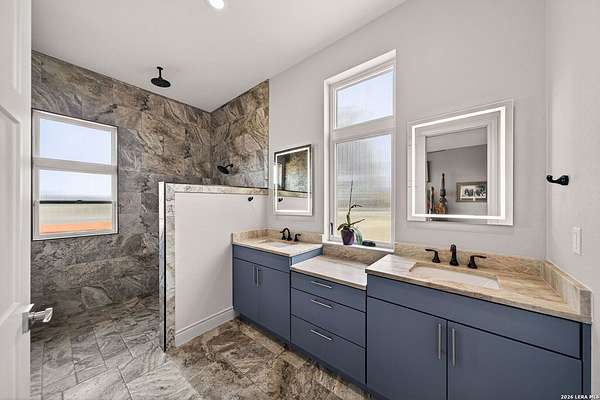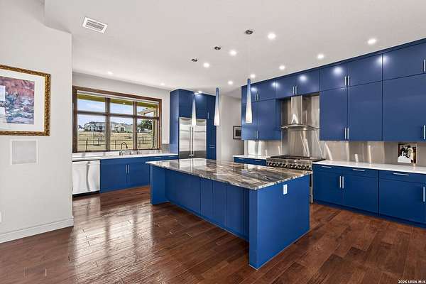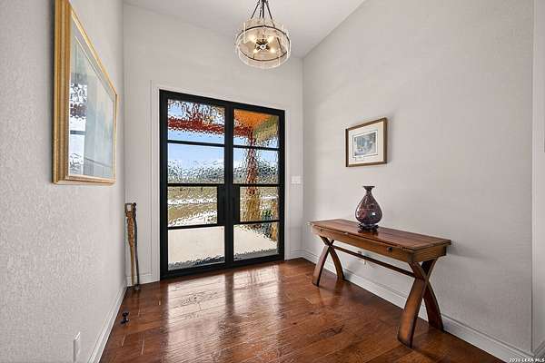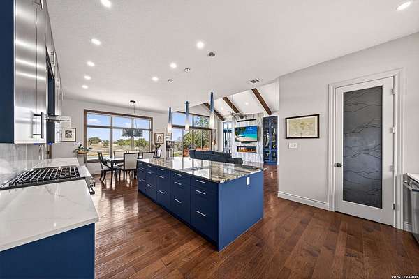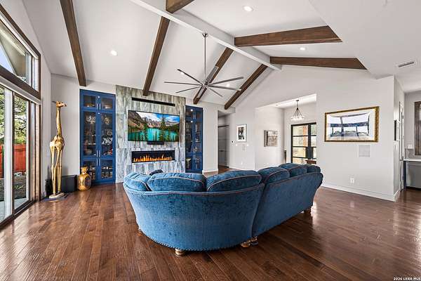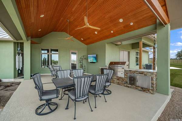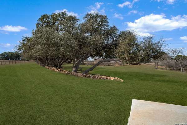 Experience the perfect blend of rugged Texas landscape and sophisticated modern design. Situated on 2.37 private acres in the Cowboy Capital of the World, this stunning one-story ranch style home offers rare peace and quiet, backing up to an additional 3-acre lot/ greenbelt that ensures your view is untouched. With 10' ceilings paired with 8' solid core doors create an airy, substantial feel throughout. The Chef's Kitchen outfitted with high-end JennAir appliances, a Reverse Osmosis system, and a layout that flows effortlessly into the living space with premium view through the oversized Marvin Windows which flood the home with natural light and offer panoramic views of the Texas Hill Country. A seamless mix of rich hardwoods and durable tile-no carpet in sight.The transition from indoor to outdoor living is seamless, designed for those who love to host or simply soak in the sunset. The pool is a pristine centerpiece with a massive 477 sq. ft. covered porch featuring a built-in charcoal grill (plumbed for gas) for year-round entertaining. The Shop/Garage are an expansive 977 sq. ft. 3-car garage, fully insulated and ready for your vehicles, tools, or hobbies. This Bandera beauty also has access to the river through the HOA Park . Horses allowed to enjoy the roughly 2.5 mile trail in the community.