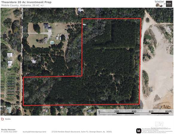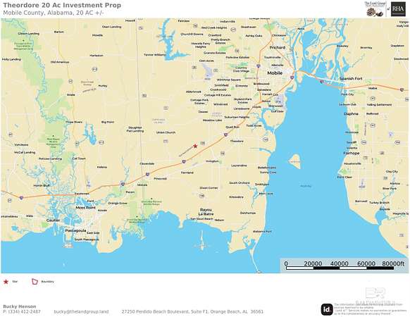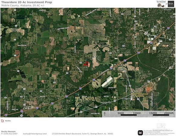 Est $2,860/moVery nice commercial/investment opportunity in Theodore. Undeveloped +/-20 acres, with road access. Great soils. Possible residential development in the West Mobile/Theodore area. Buyer to verify all information during due diligence.