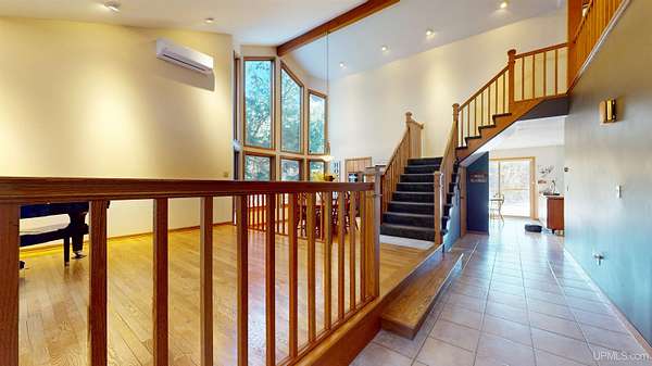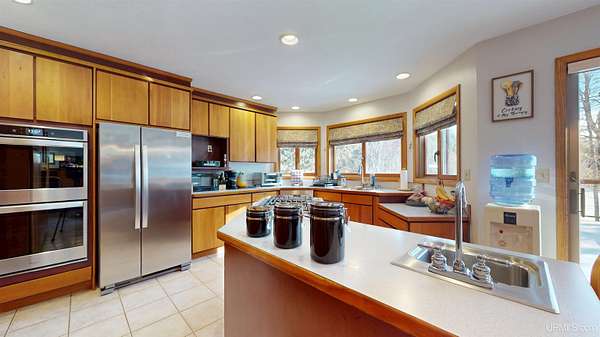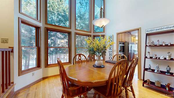 Set along the peaceful banks of the Ford River, this 4-bedroom, 3-bath home sits on over three acres of natural beauty with river frontage, offering tranquility and a scenic setting just outside of Bark River. The custom design of this home blends modern comfort with warmth and character. Stepping inside, you're immediately greeted by a large, breathtaking great room and dining area where soaring ceilings and a wall of windows showcase the lush forest beyond. The natural light pours in, creating a space that feels both grand and inviting, a perfect setting for gathering with family or entertaining friends. The spacious kitchen offers plenty of cabinetry, counter space, and a large island perfect for meal prep or casual dining. The open flow between kitchen, dining, and living spaces allows for effortless connection, while access to the rear deck brings the outdoors even closer. Upstairs, a cozy loft area leads to generous bedrooms with serene wooded views. The primary suite is a true retreat with a walk-in closet and a relaxing en suite bath complete with a soaking tub. The walkout basement extends your living space even further, creating the perfect spot for family movie nights, a play area, or hosting overnight guests. Outdoors, enjoy the peaceful sounds of the river as you relax on the deck or wander the wooded trails around the property. A 3-car attached garage provides ample space for vehicles, storage, or hobby use. Built in 1996 and well maintained, this home offers both quality and comfort in a scenic Upper Peninsula setting. Located within the Escanaba Area Public School District, this property provides an ideal balance of country living and convenience, just minutes from town, yet surrounded by the calm of nature. Whether year-round living or a seasonal escape, this Ford River home captures the essence of Upper Peninsula living at its best.