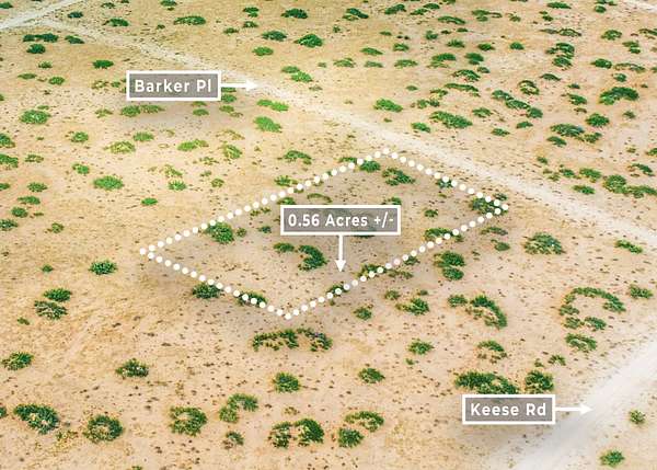 The property is accessed via dirt road frontage on Barker PI Road, which runs through this section of undeveloped land and connects to nearby paved roads leading into the city.
